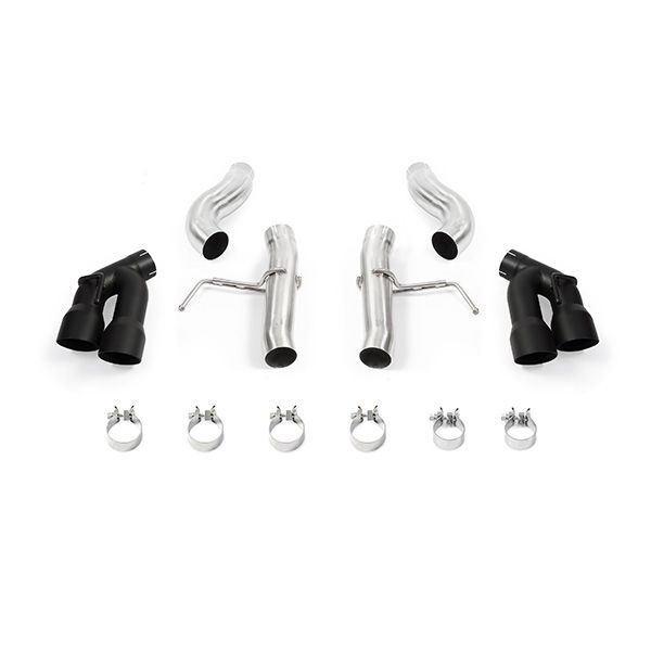 TechSpec Includes: (2) Stainless Steel Front Pipes–(2) Stainless Steel Muffler Delete Pipes–(4) 4-inch Double Wall Exhaust Tips–(6) 3-inch Exhaust Band Clamps–(1) Cutting Template w/ Instruction Card–Mishimoto Lifetime Warranty