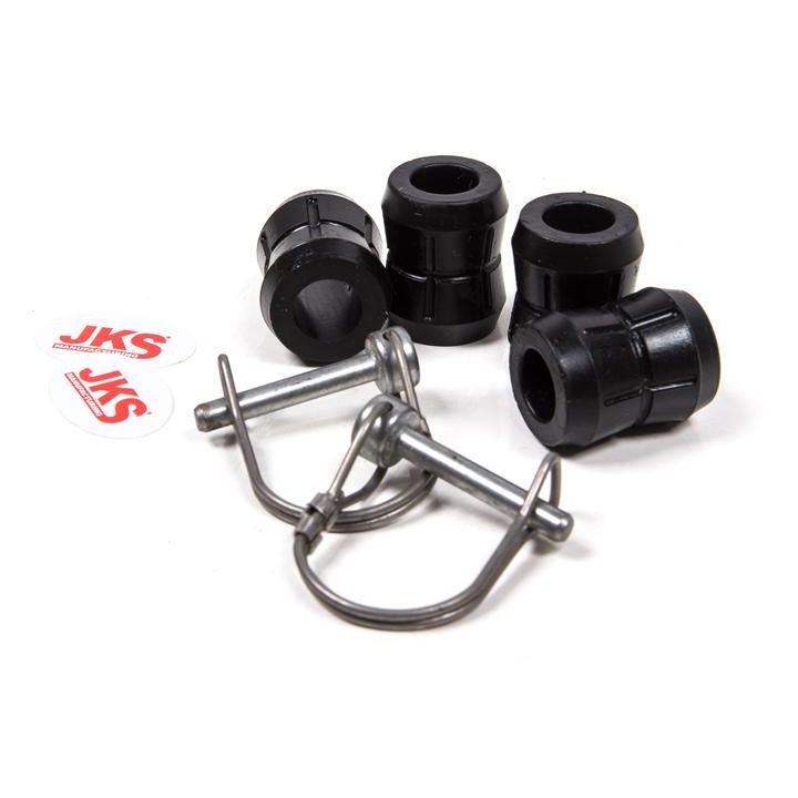 Service your JKS sway bar links with all new bushings and disconnect clip pins. The Quick Disconnect rebuild kit includes 4 bushings and 2 quick clips.