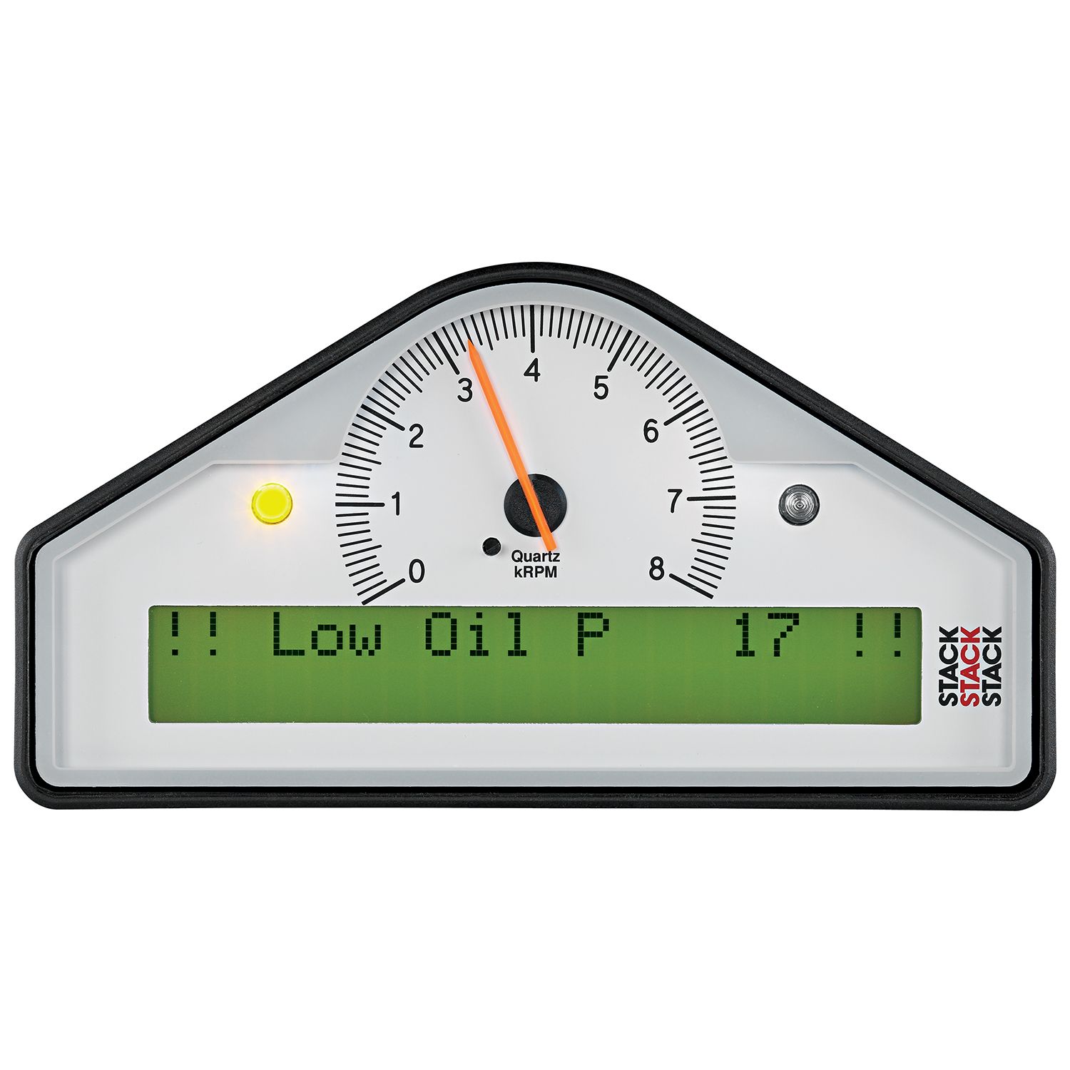Stack Instruments Series, Race Display, Pre-Configured, White, 0-8K RPM (PSI, Degree F, MPH)