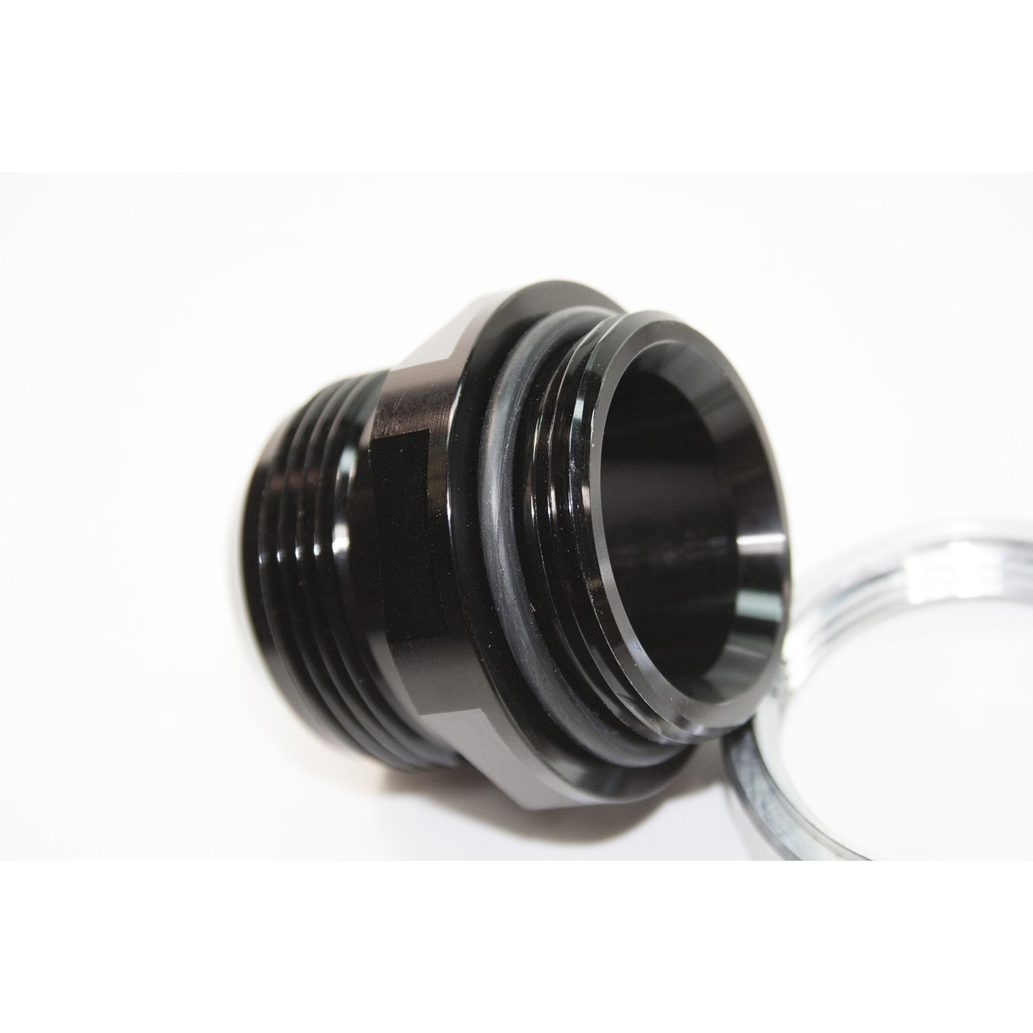 RADIATOR FITTING, ADAPTER, Union, Straight, -20AN O-Ring Male to -20AN Male, Aluminum, incl "O" ring and raw bung, Black Anodized, Each
