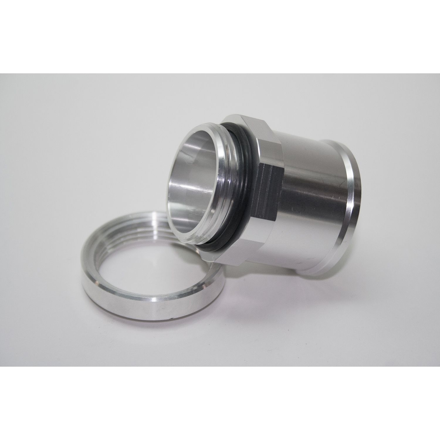 RADIATOR FITTING, STRAIGHT, -20 AN O-Ring Male to 1.75 in. Hose, Aluminum, Silver Anodized, incl raw bung, Each