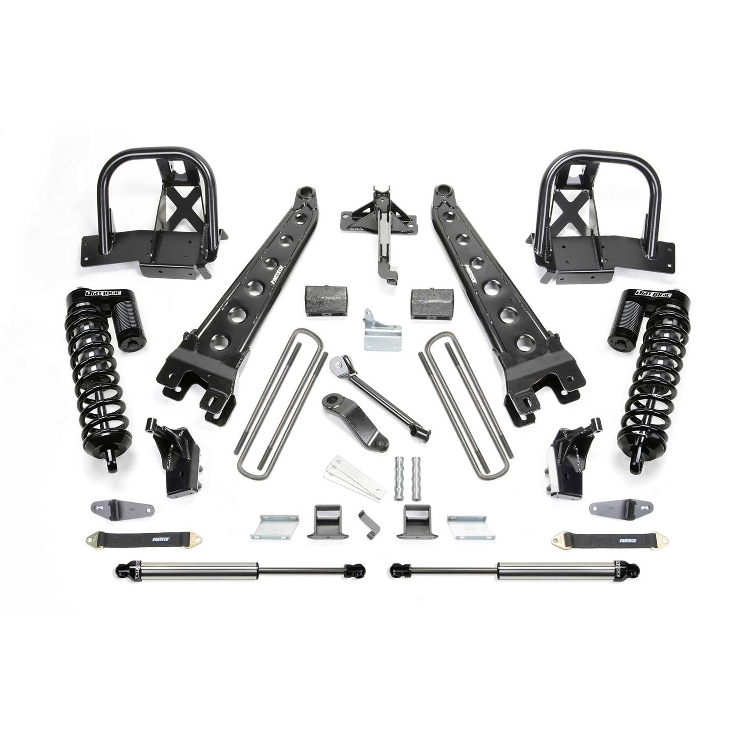 Our patented Radius Arms feature a full tubular structure strengthened by dimple die side plates, with an adjustable alignment cam at the axle to allow caster adjustment. Front spring lift options includes 6 replacement Coil Springs. Completing this system is a Trac Bar relocation bracket, Pitman Arm, Sway Bar drops, and a rear Block & U-bolt kit.