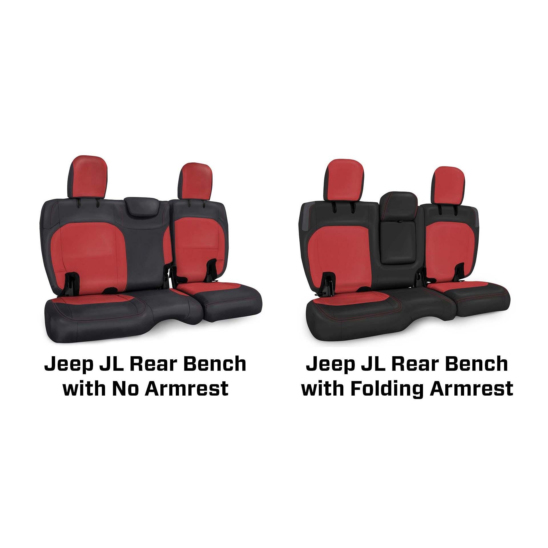 PRP's Seat Covers for the Jeep Wrangler JL bring a whole new look to your interior. These covers have been expertly crafted to fit perfectly over your factory JL seats providing an OEM fit and finish. Install yourself or through a certified PRP installer. Made from durable marine-grade vinyl, they can handle the abuse from both on and off-road environments. The covers install over your stock upholstery, and are side impact airbag compatible. Two different models are available depending on your vehicle's original interior. Vehicles with original leather interiors feature a fold down arm rest in the center of the bench. Vehicles with original cloth interiors do not have an arm rest.