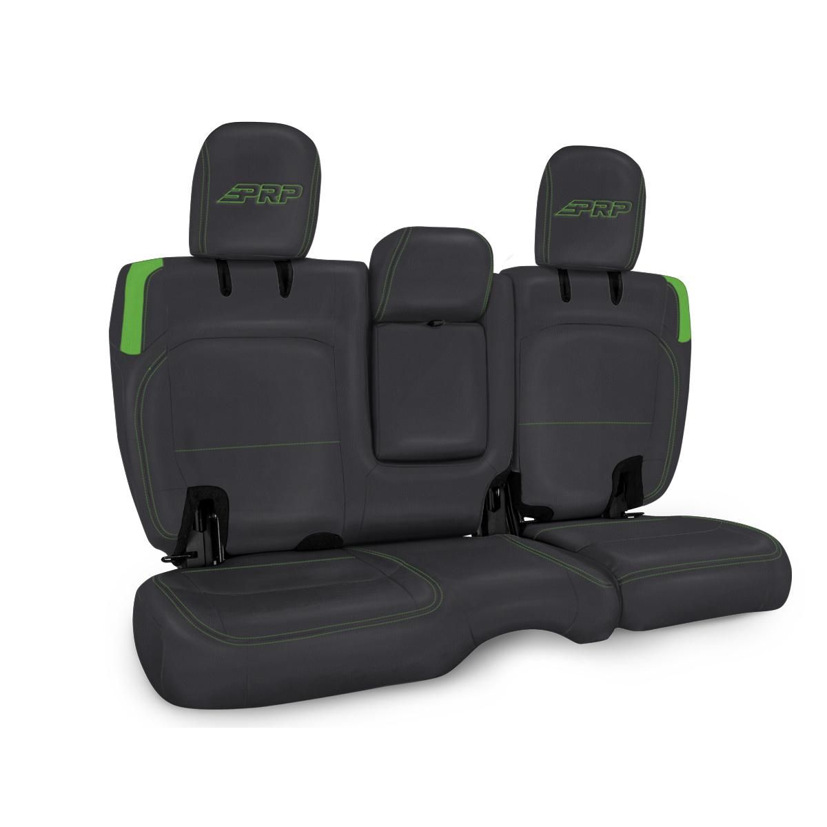 PRP's Seat Covers for the Jeep Wrangler JL bring a whole new look to your interior. These covers have been expertly crafted to fit perfectly over your factory JL seats providing an OEM fit and finish. Install yourself or through a certified PRP installer. Made from durable marine-grade vinyl, they can handle the abuse from both on and off-road environments. The covers install over your stock upholstery, and are side impact airbag compatible. Two different models are available depending on your vehicle's original interior. Vehicles with original leather interiors feature a fold down arm rest in the center of the bench. Vehicles with original cloth interiors do not have an arm rest. The 4XE has a unique bench design. REAR BENCH COVERS AVAILABLE FOR THE FOLLOWING JEEP MODELS: 2018+ Wrangler JL 2 Door – B041 2018+ Wrangler JLU 4 Door with No Armrest – B043 2018+ Wrangler JLU 4 Door with Armrest – B044 2021+ Wrangler JLU 4XE Edition – B062