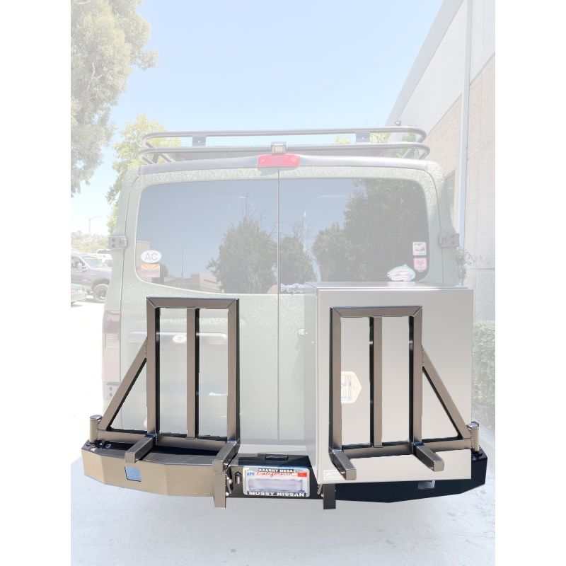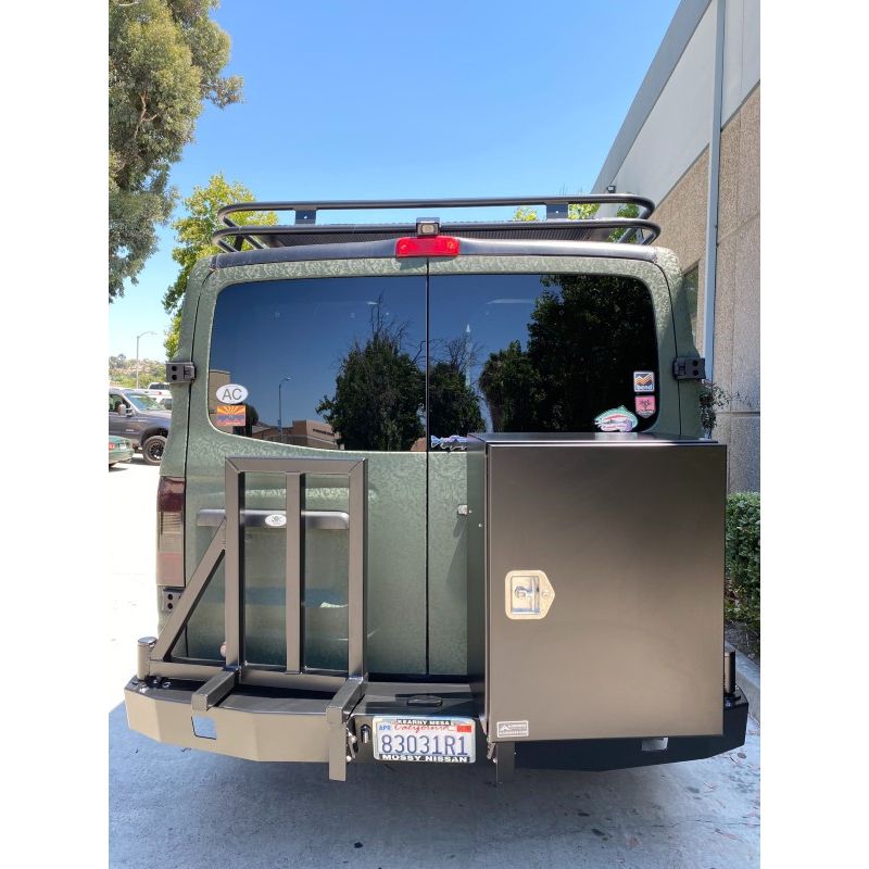 The Nissan NV is the newest entry into the van market and owners are customizing interiors and outfitting their vans for camping and off-roading. As always, storage is at a premium. Aluminess has an aluminum Rear Bumper that solves this problem with dual swing-outs and multiple storage solutions to fit your needs. Whether you need to bring extra fuel, a generator, tools, or a variety of other things, your Aluminess rear bumper can carry it. You can even fit a full-size spare on a swing arm to ensure that you can get home safely in case you get a flat. Satisfy your off-road and outdoor desires with this light-weight aluminum bumper.
