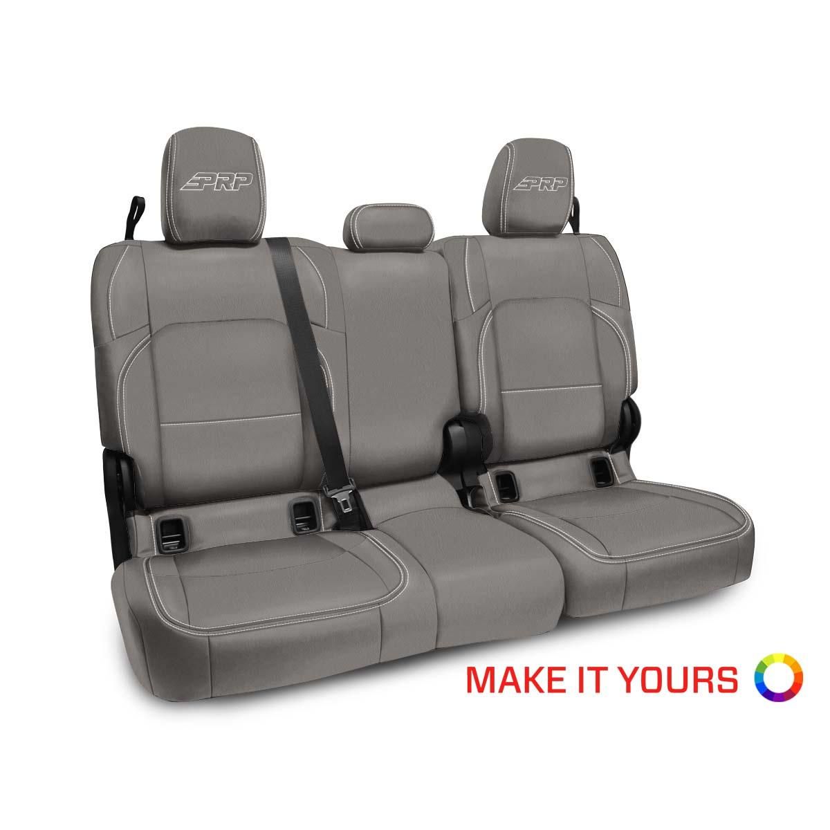 PRP's Rear Bench Covers for the Jeep Gladiator JT brings a whole new look to your interior. These covers have been expertly crafted to fit perfectly over your factory JT bench providing an OEM fit and finish. Install yourself or through a certified PRP installer. Made from durable marine-grade vinyl, they can handle the abuse from both on and off-road environments. The covers install over your stock upholstery. Two different models are available depending on your vehicle's original interior. Vehicles with original leather interiors feature a fold down arm rest in the center of the bench. Vehicles with original cloth interiors do not have an arm rest.