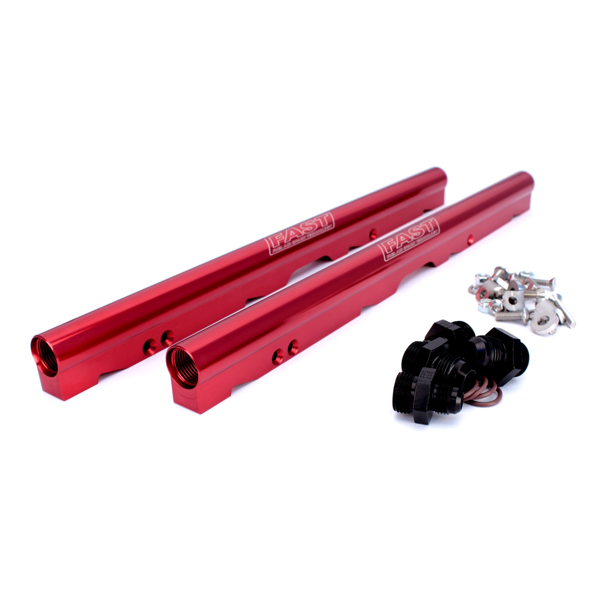 FAST LSX/LSXR/LSXRT Fuel Rails feature a larger internal diameter that dampens the pulses and provides increased fuel volume, ensuring that your injectors never run dry. In addition, they yield better fuel distribution and ultimately greater horsepower. Featuring high strength billet, lightweight, red or black (specific applications) anodized aluminum construction (does not include Part 146020-KIT or Part 146021-KIT), FAST fuel rails deliver performance in addition to a show car quality appearance.