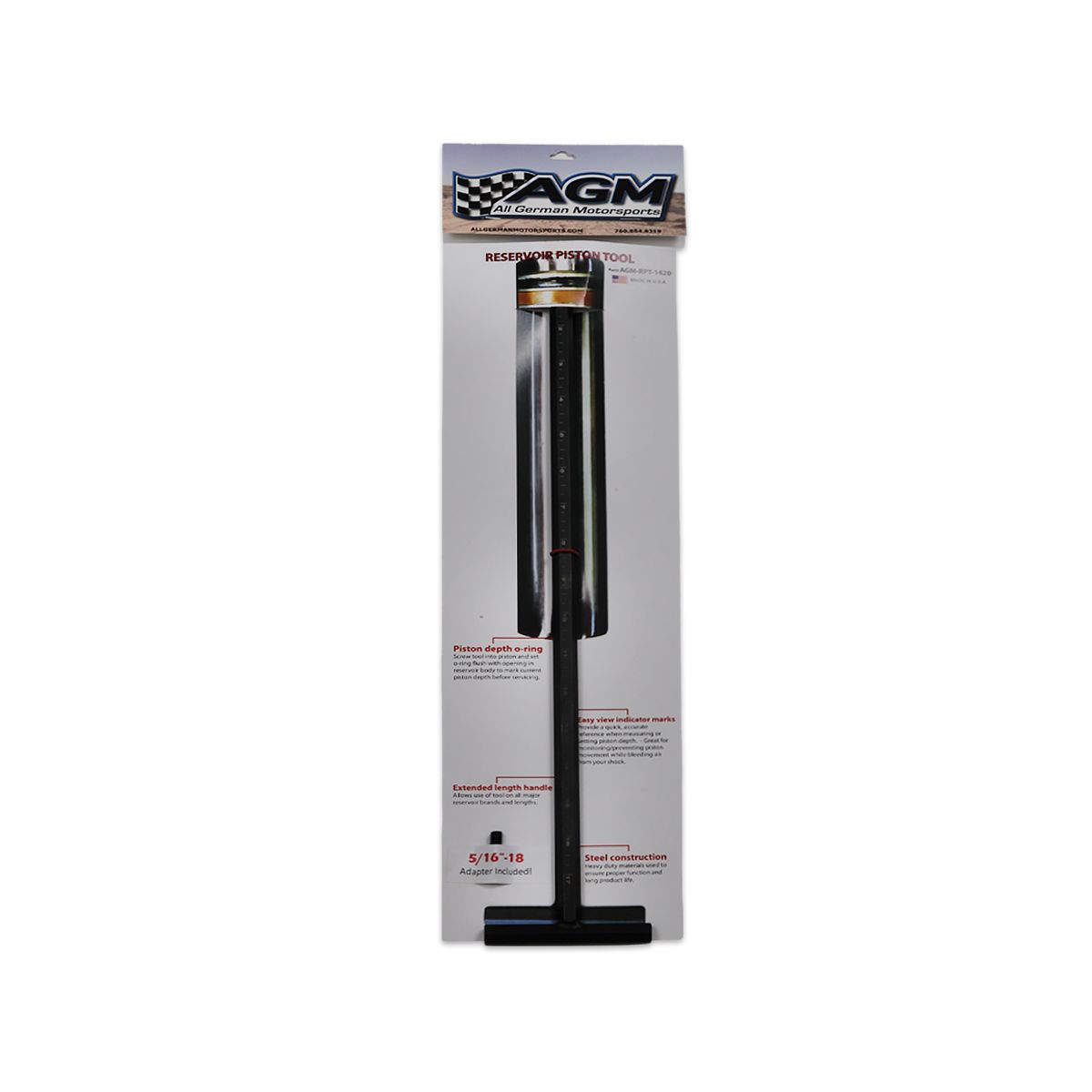 The AGM Reservoir Piston Tool provides a quick and accurate method of measuring and setting shock reservoir piston depth during service. In addition, the AGM Reservoir Piston Tool can be used to monitor/prevent possible piston movement while bleeding air from your shock. Made in the U.S.A. from high-grade steel, it's heavy duty construction ensures proper function and long life. The AGM Reservoir Piston Tool works on all major brand name shock reservoirs and lengths.