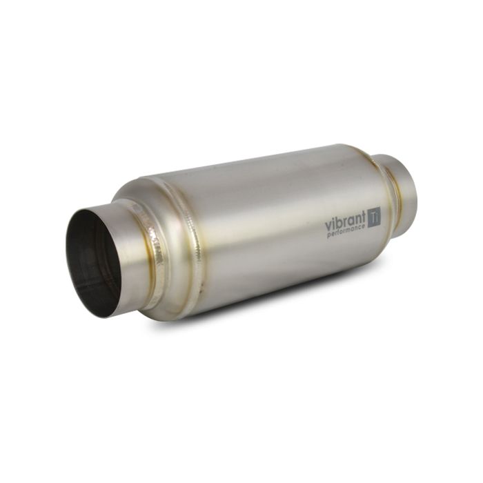 Vibrant Performance standard bottle style resonators are round bodied, densely packed with our premium multi-layered sound absorption materials, and manufactured from 304 stainless steel and CP1 Titanium for optimum durability and corrosion resistance. Vibrant Performance standard bottle style resonators have a sleek design that is optimal for easy installation and work to maximize the reduction of exhaust db levels.