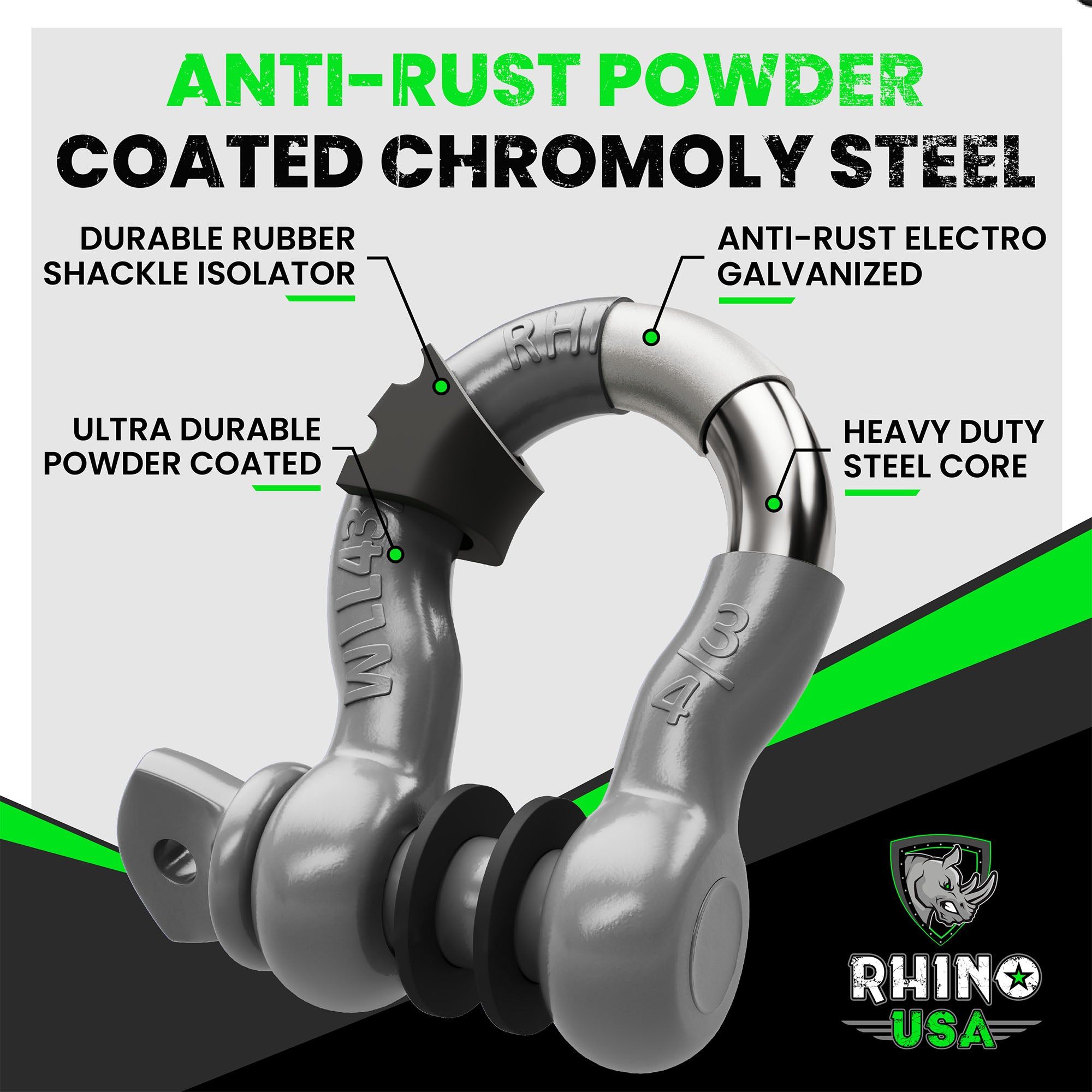 RHINO USA 3/4" D-RING SHACKLE SET (2-PACK)(GRAY) – RNO-GRY-SHACKLES