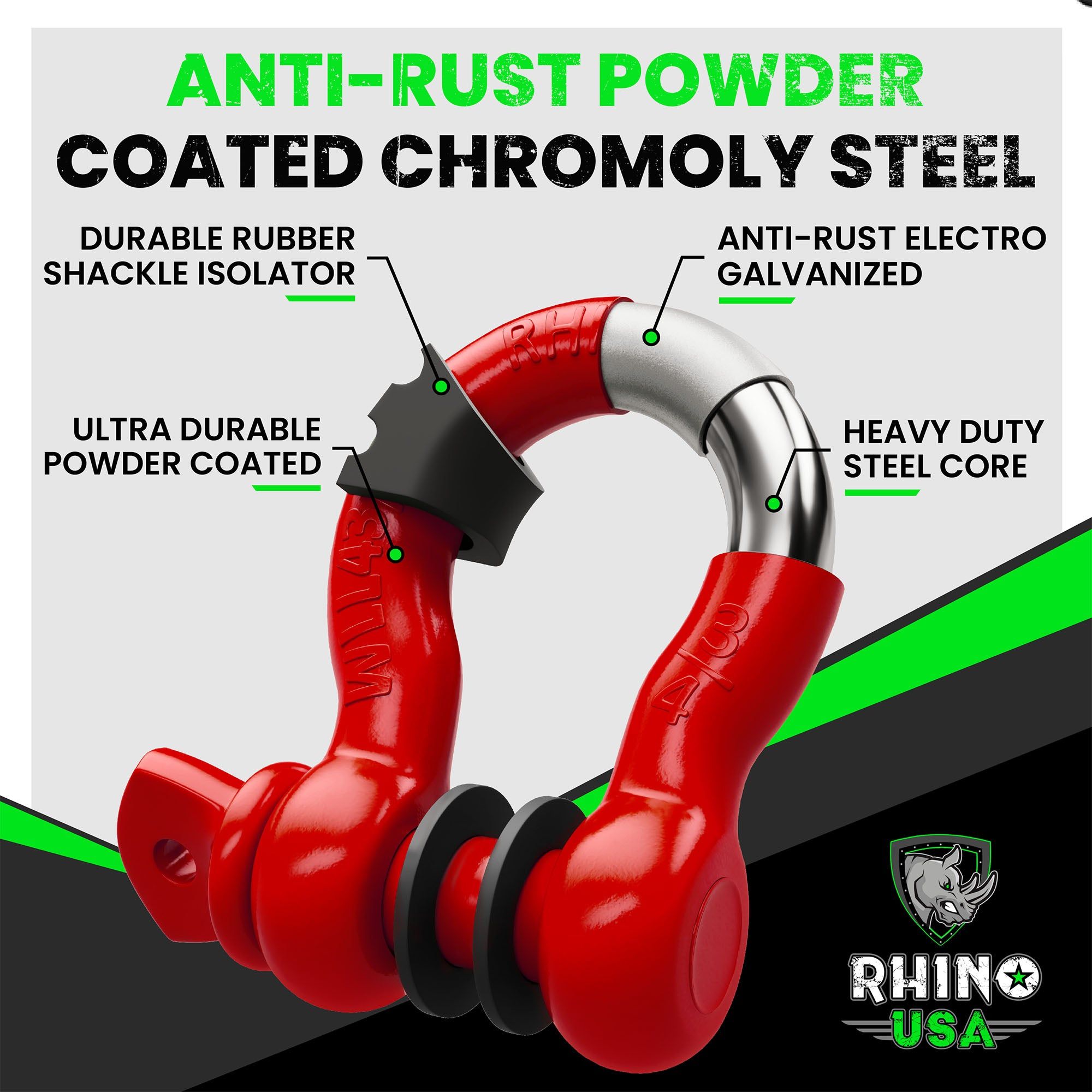 RHINO USA 3/4" D-RING SHACKLE SET (2-PACK)(RED) – RNO-RED-SHACKLES