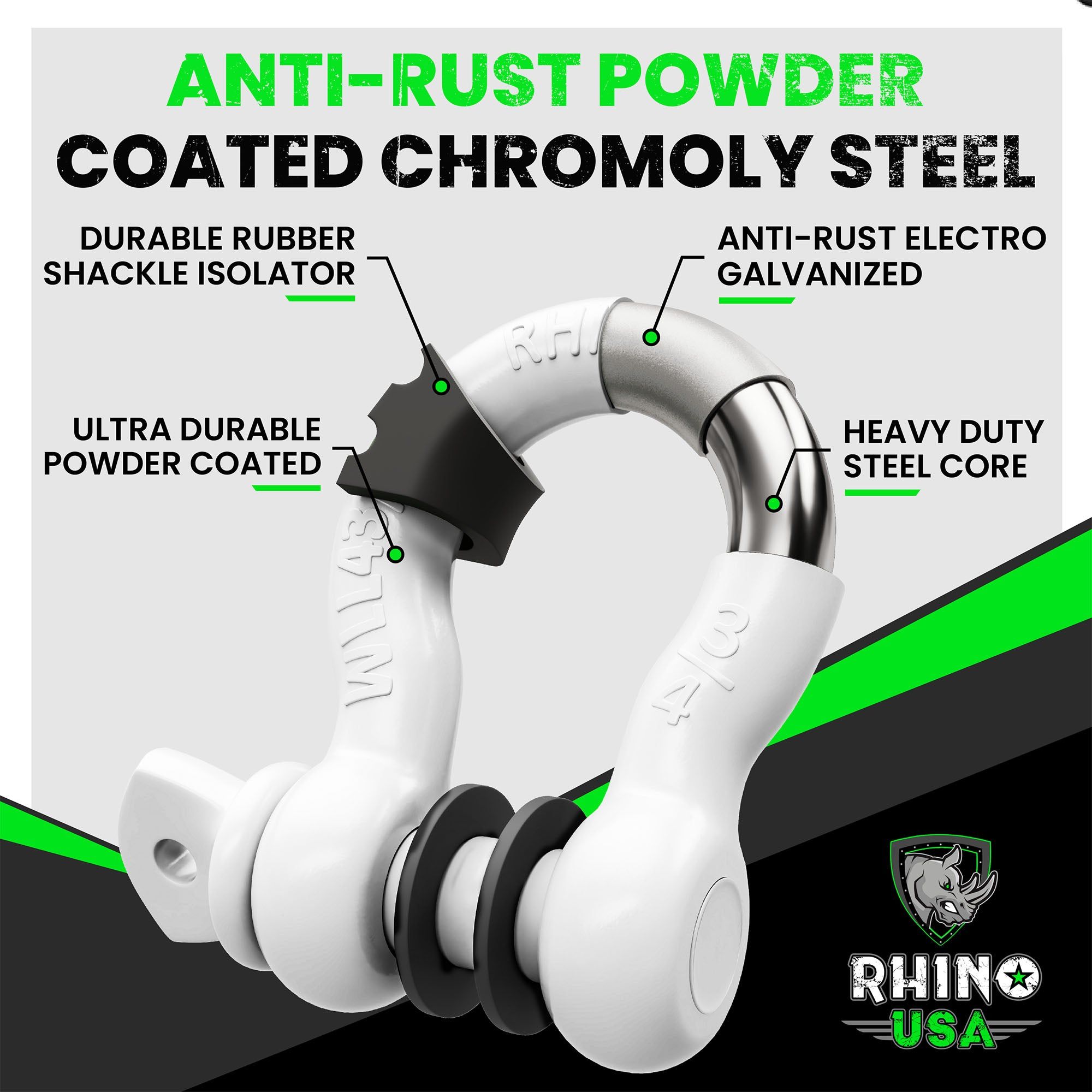 RHINO USA 3/4" D-RING SHACKLE SET (2-PACK)(WHITE) – RNO-WHT-SHACKLES