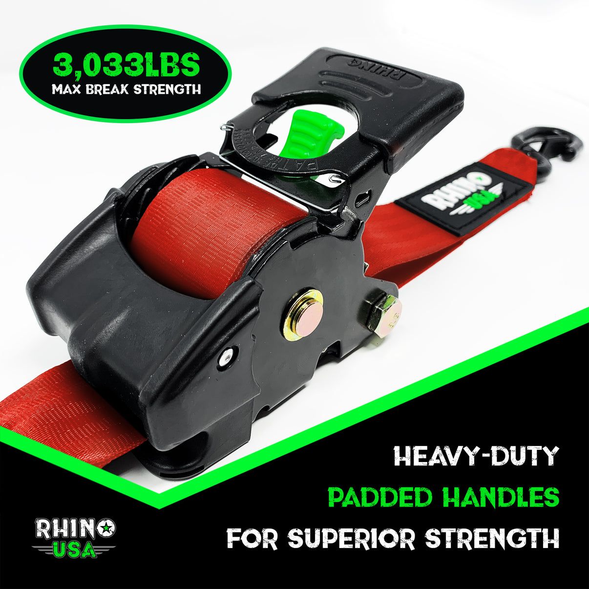 RHINO USA RETRACTABLE RATCHET STRAPS (2PK 2INX10FT) RED – TD-RSRE2X10-RED