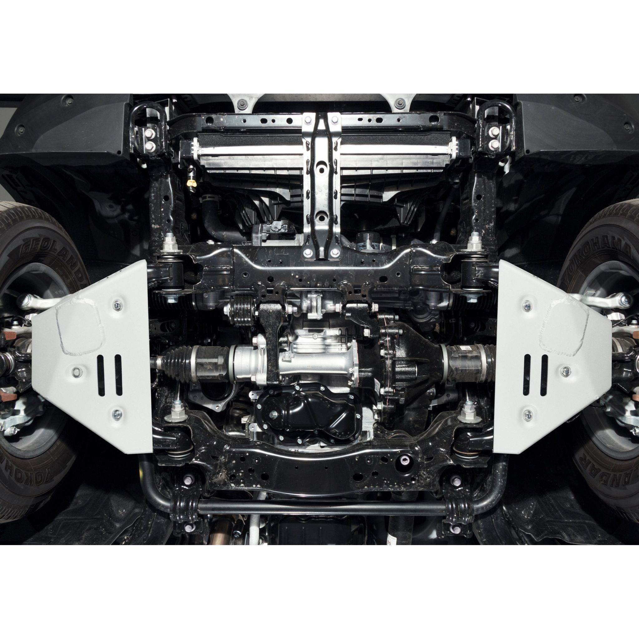 Protect your vehicle's underbody with RIVAL premium skid plates, engineered from Deep-Stamped 1/4-inch Aluminum for unbeatable strength and minimal weight. Designed for off-roaders, these high-performance skid plates shield vital components from rocks, logs, and rough terrain without weighing your vehicle down. No drilling or cutting required. Thanks to the natural corrosion-resistant properties of aluminum, you'll never have to worry about rust, even if the coating gets scratched or gouged. Whether you're rock crawling or overlanding, RIVAL aluminum skid plates deliver maximum durability, performance, and peace of mind. Note: We recommend using a funnel with any RIVAL skid plate when changing the oil to prevent spills and ensure a clean process. Color: Matte Metallic Silver. It's good practice to use a tap on all included hardware and bracketry to ensure ease of final assembly.