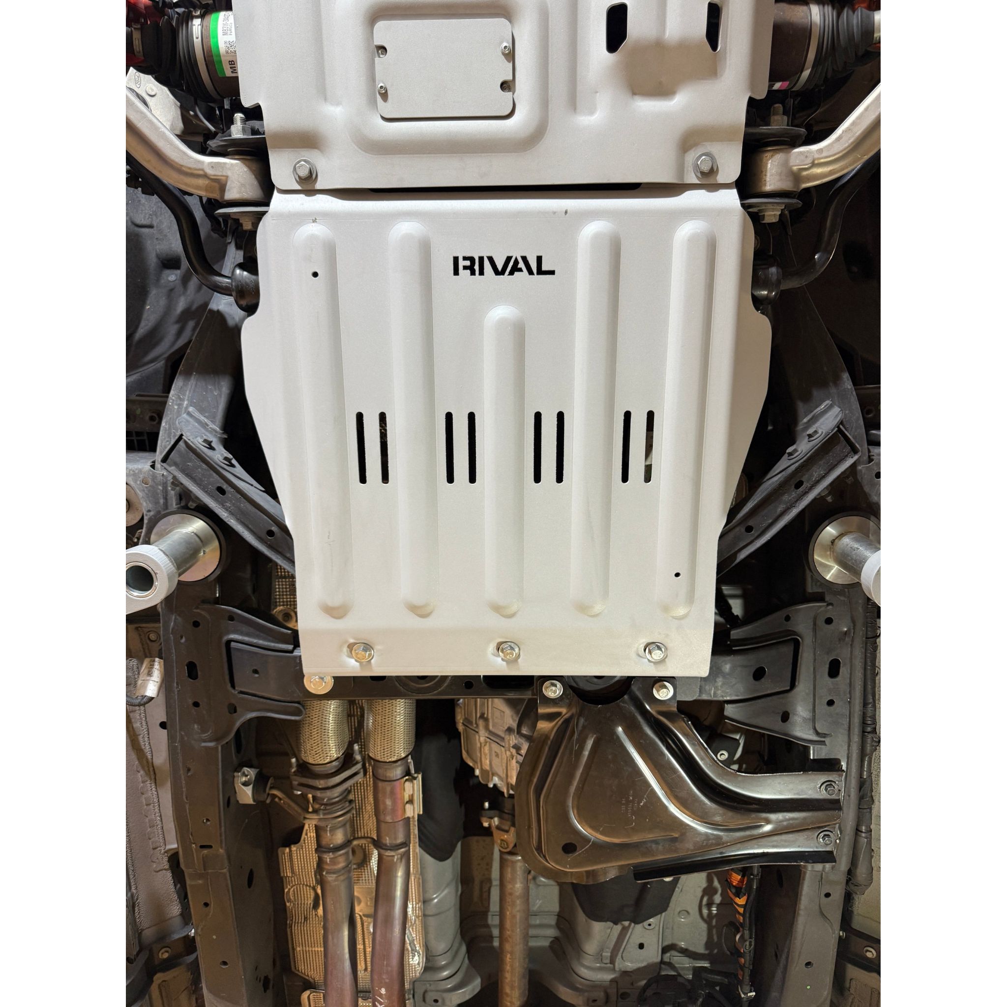 Protect your vehicle's underbody with RIVAL premium skid plates, engineered from Deep-Stamped 1/4-inch Aluminum for unbeatable strength and minimal weight. Designed for off-roaders, these high-performance skid plates shield vital components from rocks, logs, and rough terrain without weighing your vehicle down. No drilling or cutting required. Thanks to the natural corrosion-resistant properties of aluminum, you'll never have to worry about rust, even if the coating gets scratched or gouged. Whether you're rock crawling or overlanding, RIVAL aluminum skid plates deliver maximum durability, performance, and peace of mind. Note: We recommend using a funnel with any RIVAL skid plate when changing the oil to prevent spills and ensure a clean process. Compatible with 2024-2025 Ford Ranger steel factory transfer case cover. Color: Matte Metallic Silver. It's good practice to use a tap on all included hardware and bracketry to ensure ease of final assembly.