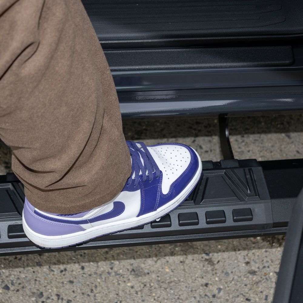 • Traction-enhanced molded step pads aligned to each vehicle door
