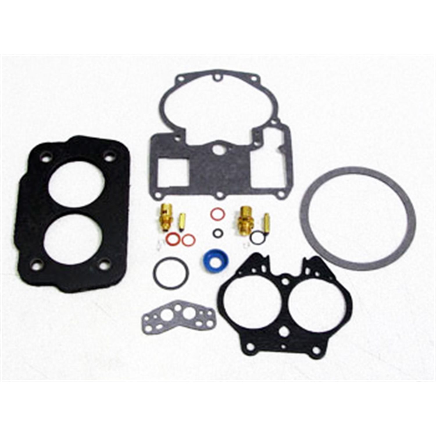 This high quality rebuild kit comes with the following: air cleaner gasket;Venturi cluster gasket; throttle body gasket; bowl cover; flange gasket; accelerator pump cup; powervalve gasket; pump discharge nozzle; 2 needle sizes.