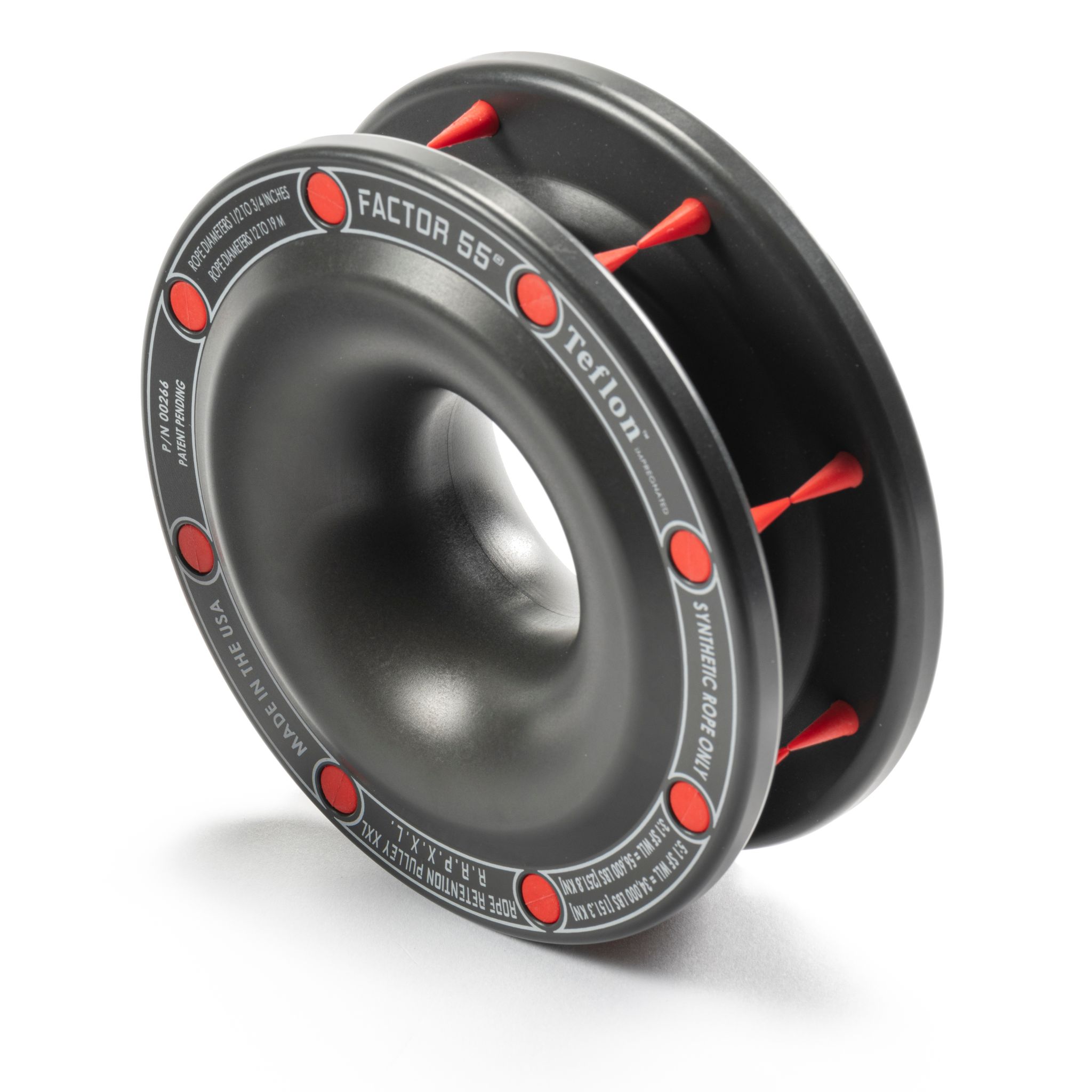 A lightweight and compact alternative to traditional heavy snatch blocks/pulleys, the RRP XXL can be used to increase pulling power or redirect the winch line. The RRP XXL is for use with synthetic rope only and is to be used in conjunction with a non-coated soft shackle. During momentary slack, the rope retention rubber fingers prevent the winch rope from escaping the pulley groove. The oversized hole radius provides a smooth surface and keeps the soft shackle from rubbing on the edges of the RRP XXL. The friction surface has been treated with Teflon to increase slickness and heat dissipation.