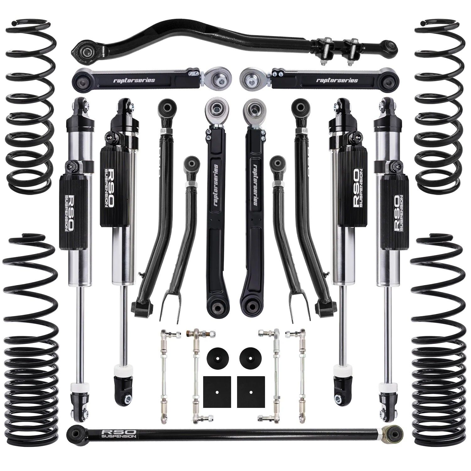 RSO Suspension’s 4 inch Lift Kits for the Gladiator are the ultimate solution for your next adventure. Designed to enhance articulation, stability and performance on and off road while giving you a driving experience like no other. High quality materials and coatings ensure lifelong durability from everyday city driving to steep inclines on the toughest trails. Catered for those looking to enhance their Gladiator's off road performance beyond the factory limitations. Each kit's components were specifically chosen to work together to give your ride the best balance of performance and comfort. Multiple kit stages let you choose the level of performance and value you want to experience on your Gladiator and offer the ability to upgrade further down the line. Elevate your off-road experience with our RSO suspension lift kits, the next evolution for those seeking adventure and off-road enthusiasts alike.