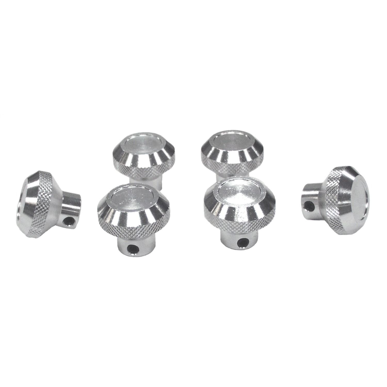 Finish the look of your vehicles dash with RT Off-Roads Dash Control Knob Set. Available in both polished and powder coated aluminum. Install in place of the factory plastic knobs and are held in place with set screws. Includes all hardware needed for installation.