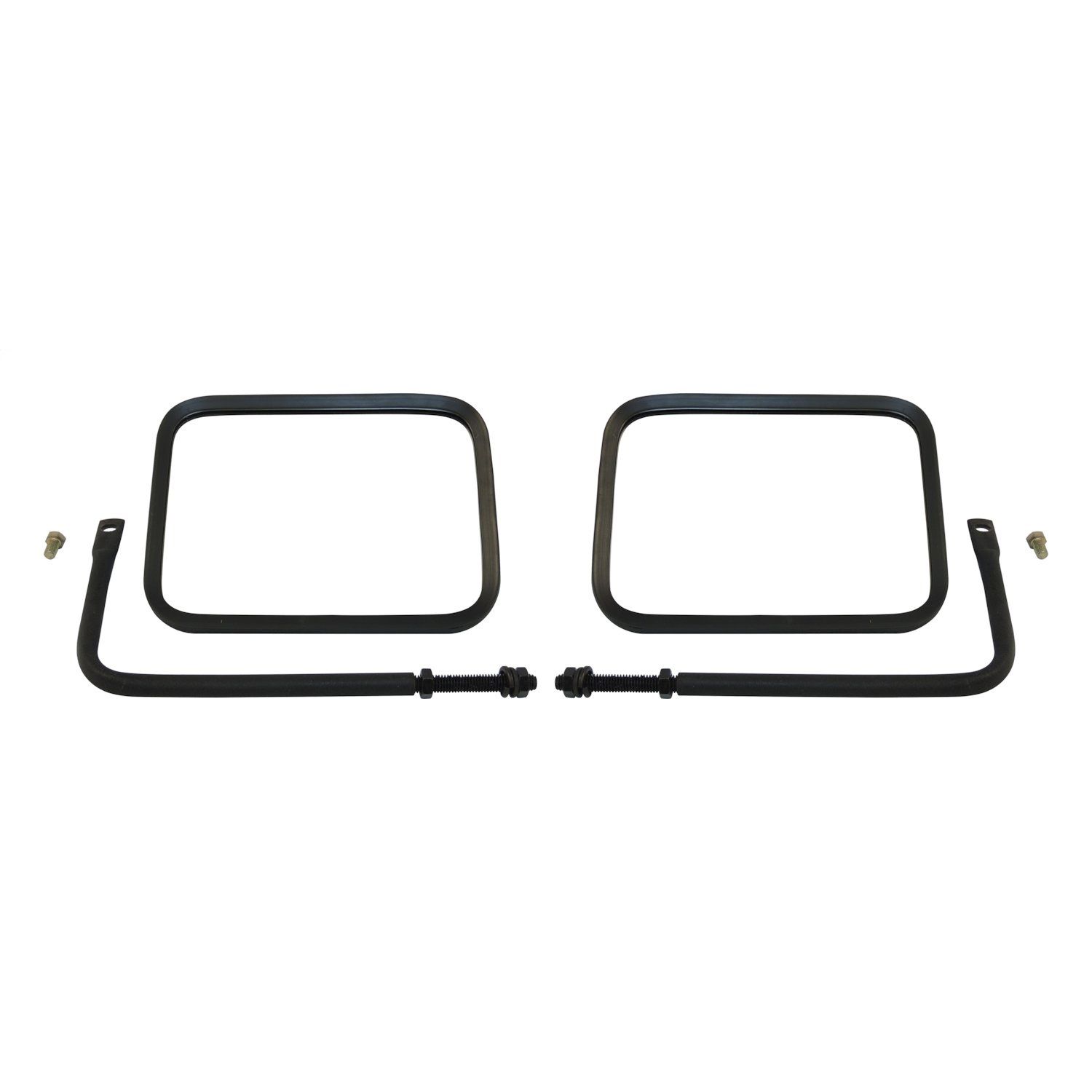 RT Off-Roads Trail Mirrors are a great solution for those who want to drive without doors but require side view mirrors. These black powder coated mirrors mount directly to the body side of the door hinge and tighten with the supplied hardware. They are adjustable to change the angle of the mirror for use on either side of the vehicle. Each kit includes (2) 8"x6" mirrors, (2) arms, and all hardware needed to mount them to the vehicle.