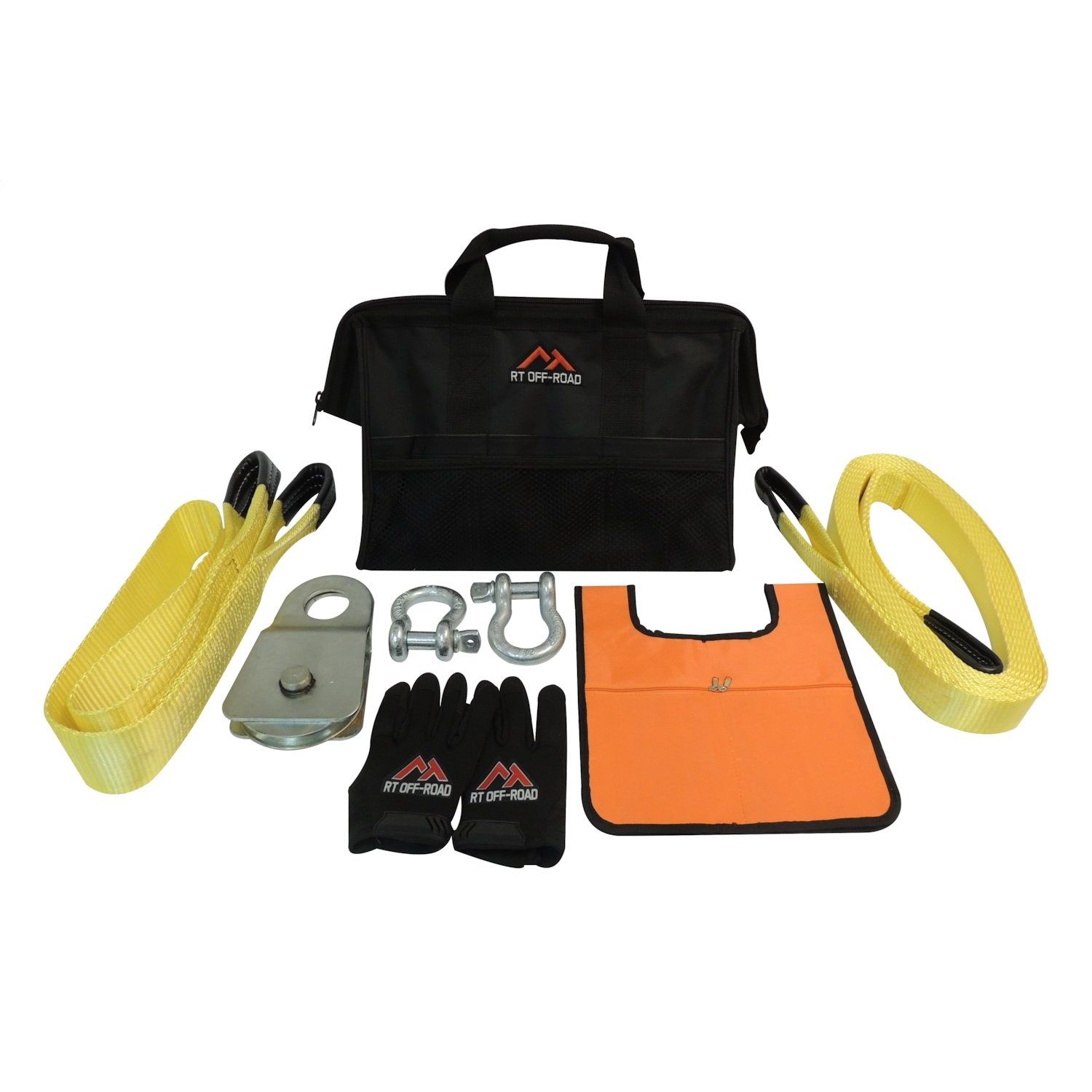 The RT Off-Road Vehicle Recovery kit is the most convenient collection of recovery parts available. This kit contains everything needed to complete a complex winching operation as well as individual items that will aid in more simple situations. All items are stowed away in a heavy duty polyester bag. Be prepared and have the right tools ready for vehicle recovery.
