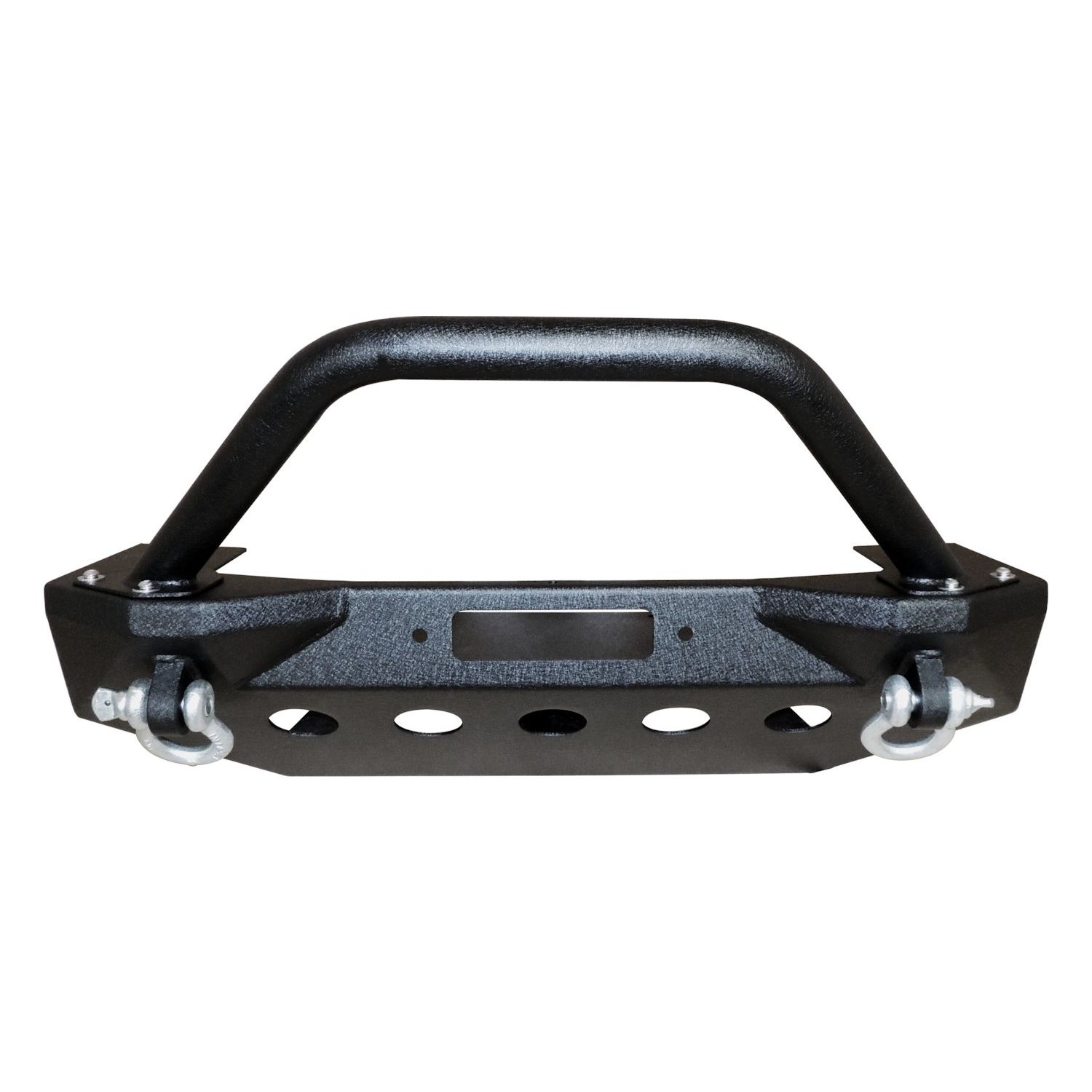 RT Off-Road's Heavy Duty Front Bumper is a heavy duty stubby plate steel upgrade over the factory plastic bumper. The 3/16" plate steel and tubular steel construction is protected with a durable textured black powder coat. The stubby width will drastically increase clearance on obstacles while off road as well as between the bumper and tire. The Bumper features a winch mount w/ fairlead mounting holes, D-Ring mounts with D-Rings, and additional holes for mounting lights. Installs into the factory bumper mounting locations using the included hardware. Does not require any drilling or modification.