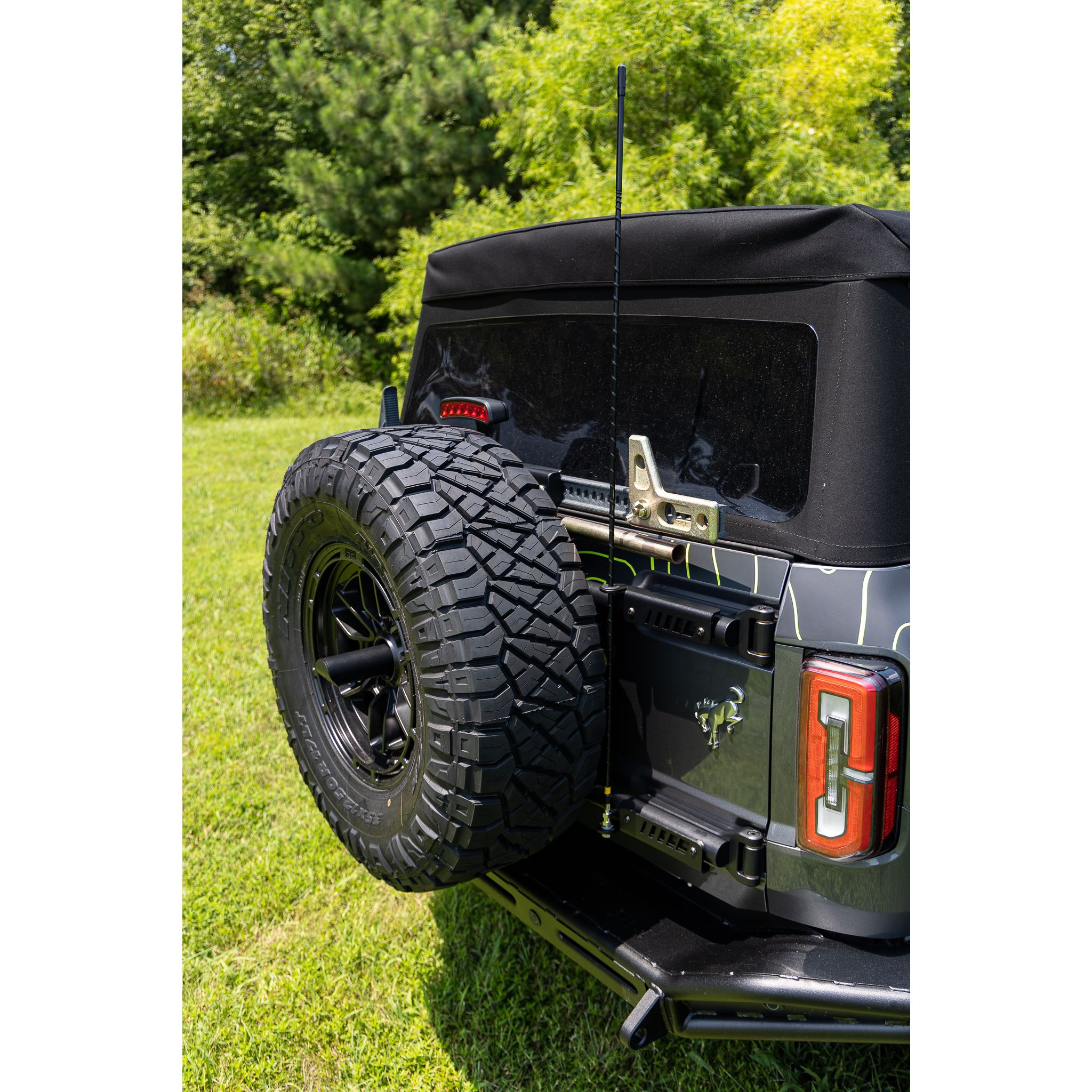 Modern Aggressive RTR Styling. With a unique design that plays off the factory surfaces of your Bronco, you will find the CB Antenna/Flag Mount makes a great addition to the modular RTR Tire Carrier or OEM tire carrier. This CB Antenna/Flag Mount helps to resist contact between the CB antenna and your Bronco's rooftop, preventing damage and helping you stay in touch while you explore. No fake bolts here, only modern, aggressive RTR styling. High-Quality Construction. The Bronco CB Antenna Mount is designed and manufactured with consideration of modular fitment with the RTR Tire Carrier for the 2021+ Ford Bronco. This modular design helps to ensure a secure and quality fit on your Bronco RTR Tire Carrier. The mount's all aluminum construction will keep your rust free for the trails ahead. Simple, Straight Forward Installation. The RTR CB Antenna/Flag Mount is designed and manufactured with consideration of modular fitment with the RTR Tire Carrier for the 2021+ Ford Bronco. If mounting with an OEM tire carrier, we recommend using the RTR Accessory Adaptor. There is no cutting or modification required for a clean, straight forward installation. Made in the USA. The RTR CB Antenna/Flag Mount is proudly designed and manufactured in America. Installation & What's In The Box. What's in the Box. Upper CB Antenna Mount. Lower CB Antenna Mount. CB Antenna Mounting Hardware. 1.00 Grommet. Installation Time-1-2 hours. Difficulty Level-Beginner to Intermediate Experience.