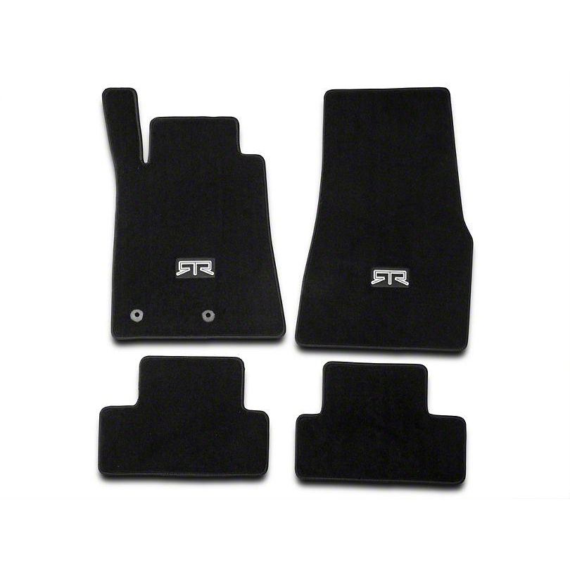 Modern Aggressive RTR Styling. Show your love for RTR with these modern RTR Black Front and Rear Floor Mats for your 2005-2010 Ford Mustang. Featuring the Ready to Rock Logo embroidered on the front mats, this set of four-floor mats will not only protect your Pony's interior but will add a touch of customization to your ride. OEM Quality. These Black RTR Floor Mats are die cut from long lasting cut pile carpet for a perfect fit and are finished with a stitched trim for impressive styling. The RTR Logo is superbly embroidered on the front (2) mats for show-winning style and they all feature a non-skid nub backing so your mats will stay where you put them. Extra Security. Unlike less expensive mats, these RTR Floor Mats are designed with two grommet holes on the driver side and will fit both the 2005-2009 and 2010 Mustangs perfectly. As an added bonus, the mats come with an extra hook that 05-09 owners can install to have the same added security as the 2010 Mustangs. Application. These are not one size fits all floor mats that you get at the local parts store. These Black RTR Floor Mats with RTR Logo are custom cut to fit all coupe and convertible 2005-2010 Mustangs perfectly, including the V6, GT, Bullitt, and Shelby GT500 models. Sold as a set of four – 2 front and 2 rear. Installation & What's In The Box. What's in the Box-. (2) Front Floor Mats. (2) Rear Floor Mats. Installation Time- (approx.) 5 minutes. Difficulty Level-Simple installation for anyone.
