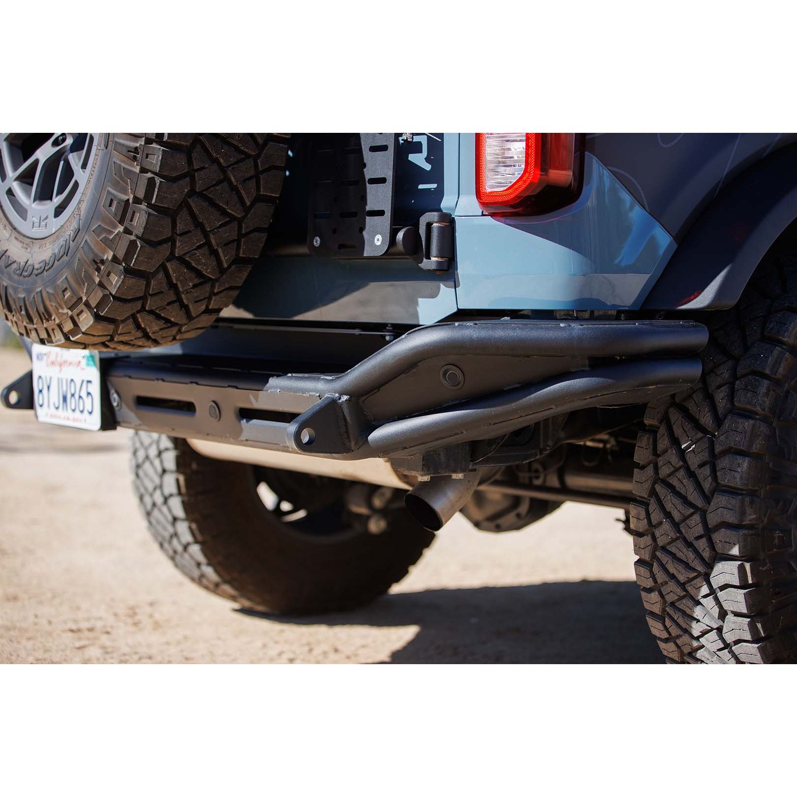 Functionality crosses paths with RTR design for the ultimate off-road experience. The RTR Rear Bumper for the 2021+ Ford Bronco is the perfect addition to your Bronco. Designed to withstand the toughest trails, this bumper features a heavy-duty steel construction that can withstand impacts and protect the rear of your Bronco. When combined with the RTR Rear Tire Carrier or OEM Tire Carrier Spacer you can hold up to a 37-inch tire, giving you the freedom to bring along all the necessary gear for your next adventure. The sleek design of the bumper perfectly complements the rugged style of the Bronco, making it a stylish and functional choice for your off-road vehicle. Whether you're tackling tough trails or simply want added protection for your Bronco, the RTR Rear Bumper is the perfect choice. Designed with the off-road enthusiast in mind. The overall design of the RTR Rear Bumper allows for greater departure angles while you're on the trails. It is constructed from 1.75 inch DOM (Drawn-over-mandrel) steel tubing which is a type of steel tubing that is created by drawing a tube through a die over a mandrel. The purpose of drawing the tube over the mandrel is to create a seamless, smooth-walled tube with consistent dimensions and a precise inner diameter. This process results in a high-quality, strong and durable tubing that can withstand even the toughest trails. The RTR Rear Bumper also includes welded D-ring shackle mounts, a removable license plate holder, and is compatible with the OEM parking sensors and hitch. Straight forward installation. The RTR Rear Bumper was designed to be installed with the OEM mounting points to make installation as easy as possible. With that being said, no cutting or modifications are required for installation. If you are replacing your plastic rear bumper on your Bronco, further components are required for installation. You will need the following parts to allow fitment for your parking sensors. OEM Parking Sensor Compatibility.