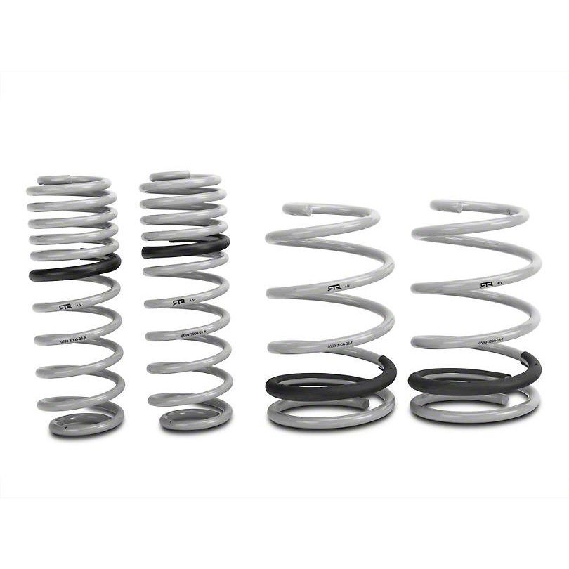 Improves Handling. Installing a set of RTR Tactical Performance Progressive Rate Springs will lower your Mustang's center of gravity, which will reduce squat during acceleration, body roll in the corners, and excessive nose-dive under hard braking. RTR Tactical Performance Springs are great for daily street driving and fun on the track. The progressive rate design offers a great ride quality for street cruising and does not lack performance when you get aggressive on the track. Aggressive Muscular Stance. RTR Tactical Performance Lowering Springs not only improve the handling of your S197 Mustang, but they also improve the overall appearance by lowering the ride height approximately 1.5" to eliminate that nasty raised 4×4 truck look for a more aggressive muscle car stance. Recommended Upgrade. Anytime you lower your Mustang, your rear axle gets moved out of alignment. Adding an Adjustable Panhard Bar will not only center your rear axle but offers great traction during straight-line acceleration as well as superior strength over the factory Panhard bar. Clears Stock and Aftermarket Wheels & Tires. These lowering springs were engineered to be compatible with your factory size wheels and tires, as well as AmericanMuscle's pre-configured wheel and tire combo kits (specific to your generation), to assure proper clearance with no rubbing issues. Application. This set of four RTR Tactical Performance Lowering Springs is designed for use on the 2005 to 2014 Mustang Coupes, including the V6, GT, and Bullitt models. Does not fit Shelby GT500. Installation & What's In The Box. What's in the Box-. (4) Springs. (2) Strut Boots. Installation Time- (approx.) 4 Hours. Difficulty Level-Mechanical expertise or professional installation required.
