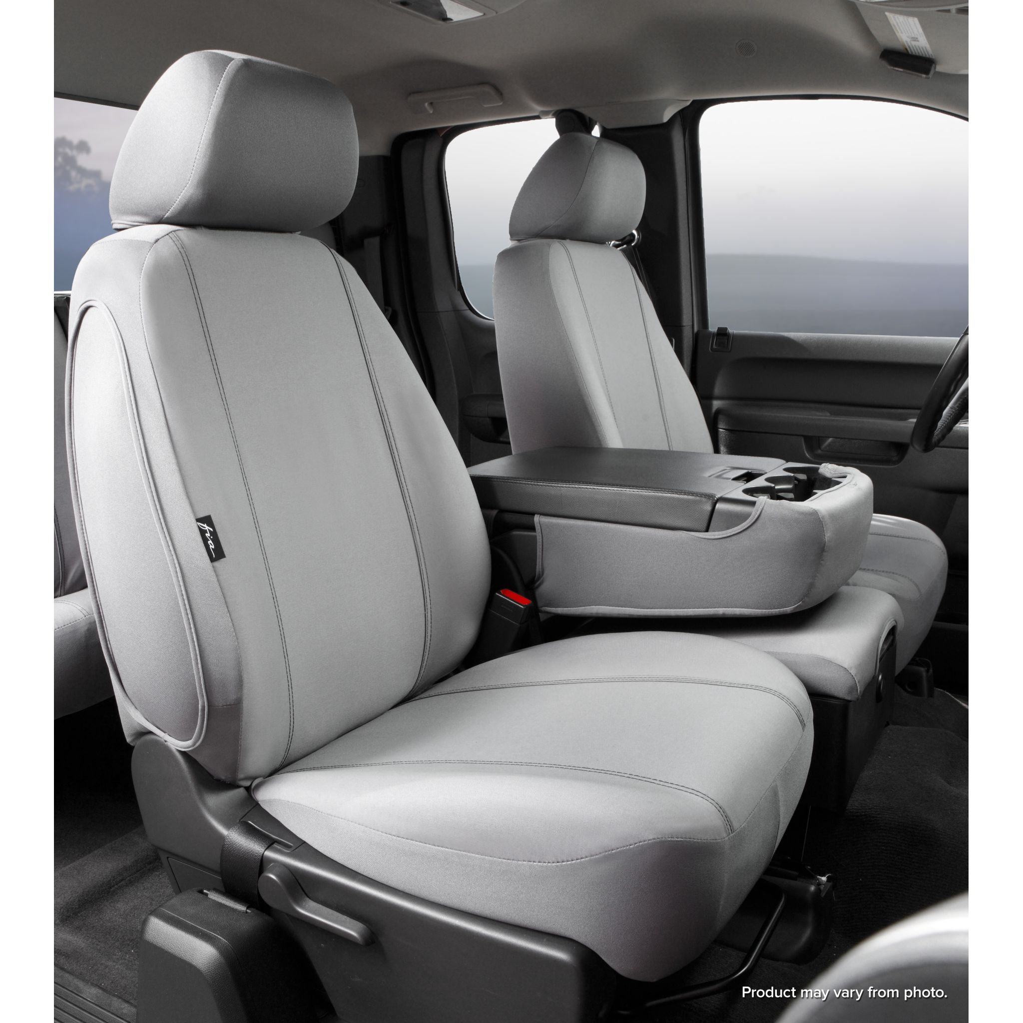 SP80 Series Seat Protector custom fit seat covers are engineered for the ultimate in seat protection for heavy commercial use. An advanced design creates a dynamic state-of-the-art custom interior. On vehicle testing of all Fia custom fit seat covers ensures an exact fit each time. Super- Grip is the slip resistent fastening system that incorporates quick release belt and buckle fasteners, zippers and velcro, making installation quick and easy. The form fit wrap around design that is accomplished through multi-directional stretch trim material molds the cover to the contours of your seat. The commercial grade double stitched poly-cotton material is hand washable as well as lightfast and colorfast. Custom formed seat belt and head rest openings, along with center console covers add to the original equipment custom look. Head rest covers included. Available in Black, Gray and Taupe.
