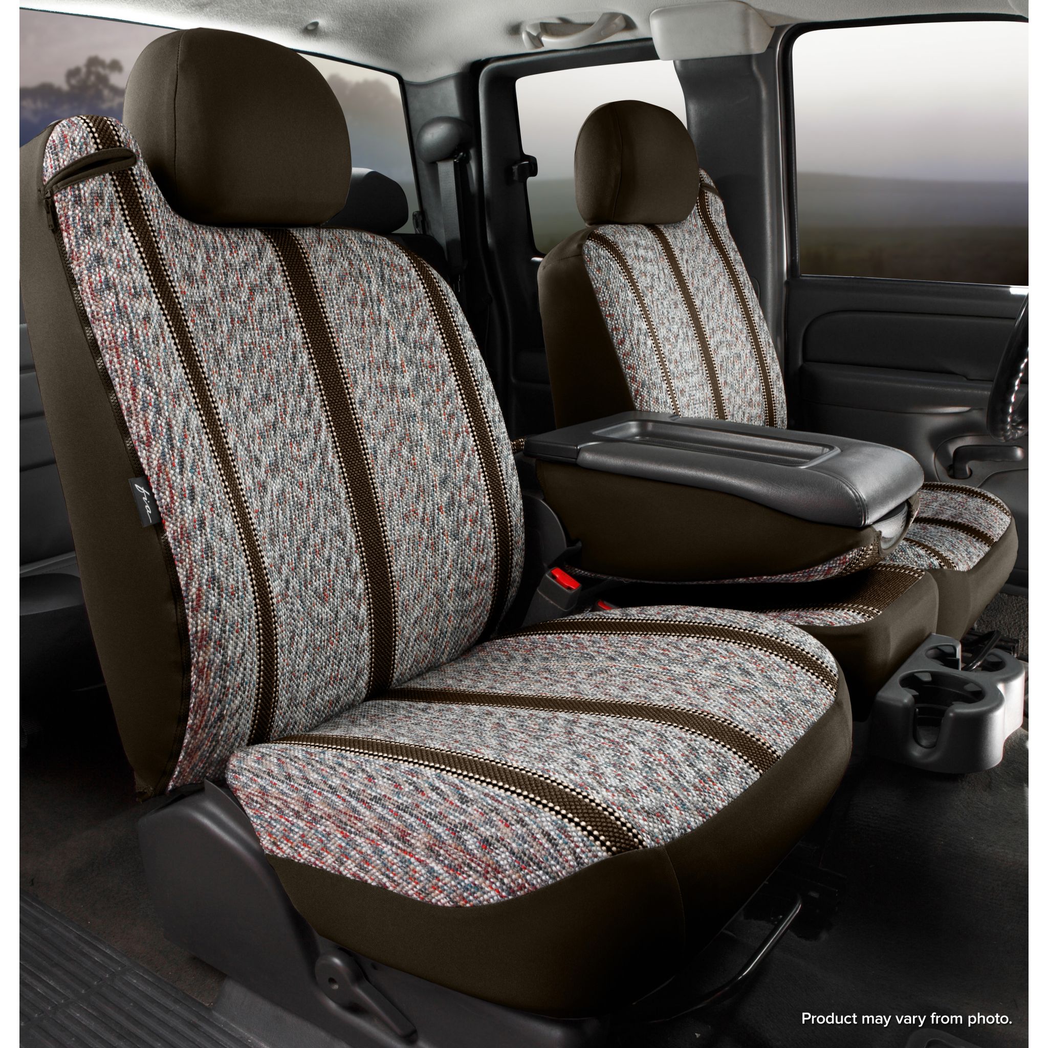 TR40 Series Wrangler custom fit seat covers are engineered with authentic woven saddle blanket material. An advanced design creates a dynamic state-of-the-art custom interior. On vehicle testing of all Fia custom fit seat covers ensures an exact fit each time. Super- Grip is the slip resistent fastening system that incorporates quick release belt and buckle fasteners, zippers and velcro, making installation quick and easy. The form fit wrap around design that is accomplished through multi-directional stretch trim material molds the cover to the contours of your seat. The material is hand washable as well as lightfast and colorfast. Custom formed seat belt and head rest openings, along with center console covers add to the original equipment custom look. Head rest covers included. Available in Black, Brown, Gray, Navy and Wine.