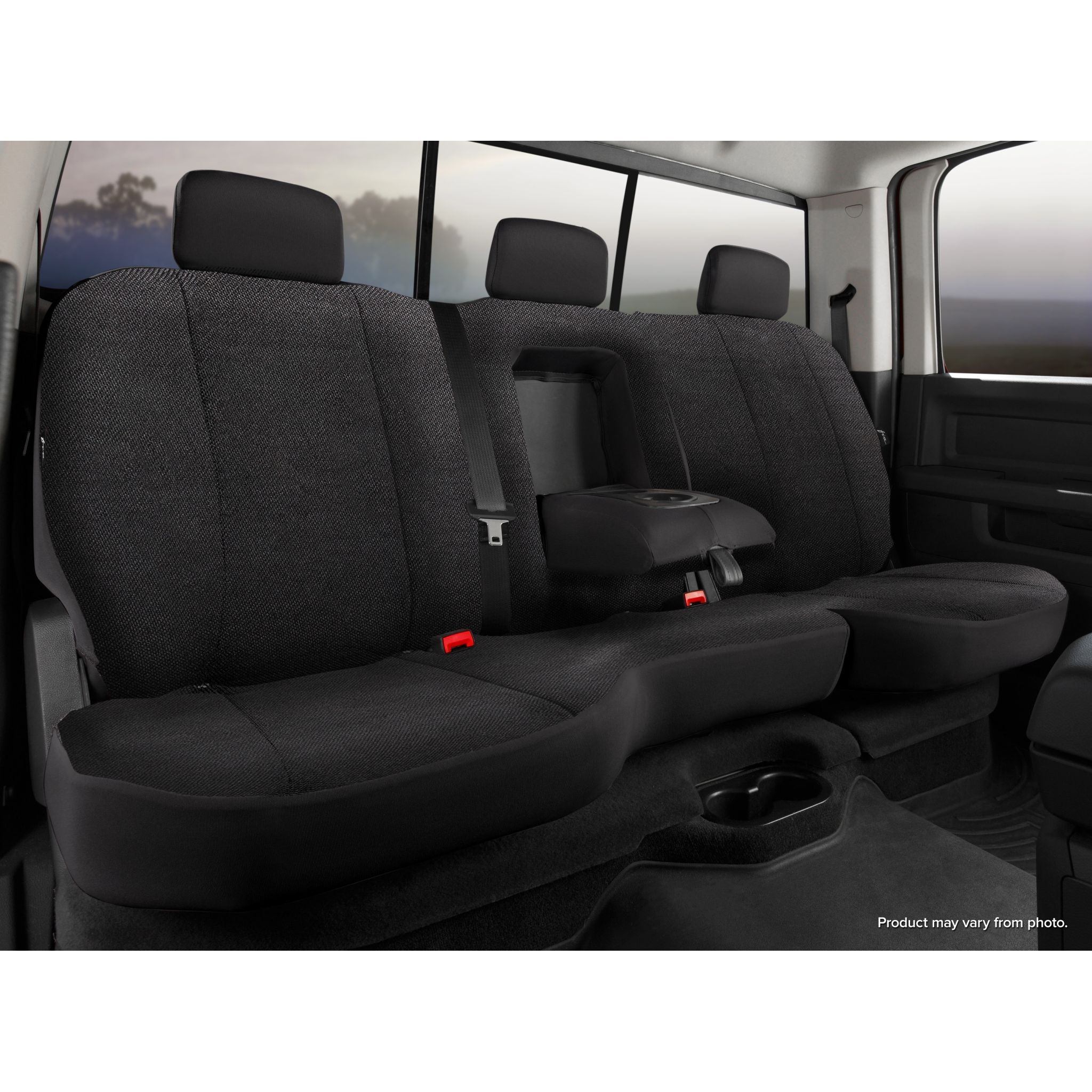 TR40 Series Wrangler custom fit seat covers are engineered with authentic woven saddle blanket material. An advanced design creates a dynamic state-of-the-art custom interior. On vehicle testing of all Fia custom fit seat covers ensures an exact fit each time. Super- Grip is the slip resistent fastening system that incorporates quick release belt and buckle fasteners, zippers and velcro, making installation quick and easy. The form fit wrap around design that is accomplished through multi-directional stretch trim material molds the cover to the contours of your seat. The material is hand washable as well as lightfast and colorfast. Custom formed seat belt and head rest openings, along with center console covers add to the original equipment custom look. Head rest covers included. Available in solid black and gray.