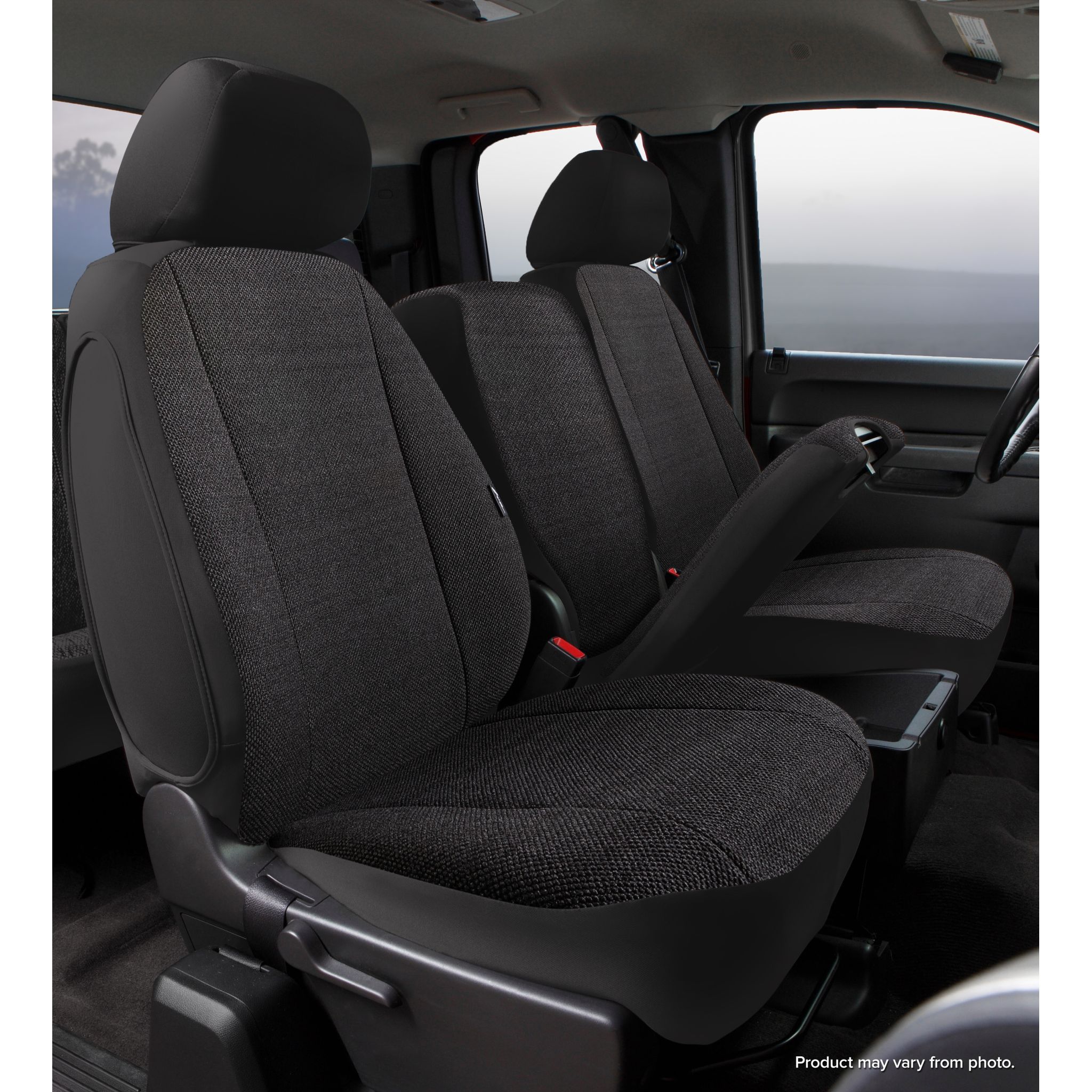 TR40 Series Wrangler custom fit seat covers are engineered with authentic woven saddle blanket material. An advanced design creates a dynamic state-of-the-art custom interior. On vehicle testing of all Fia custom fit seat covers ensures an exact fit each time. Super- Grip is the slip resistent fastening system that incorporates quick release belt and buckle fasteners, zippers and velcro, making installation quick and easy. The form fit wrap around design that is accomplished through multi-directional stretch trim material molds the cover to the contours of your seat. The material is hand washable as well as lightfast and colorfast. Custom formed seat belt and head rest openings, along with center console covers add to the original equipment custom look. Head rest covers included. Available in solid black and gray.
