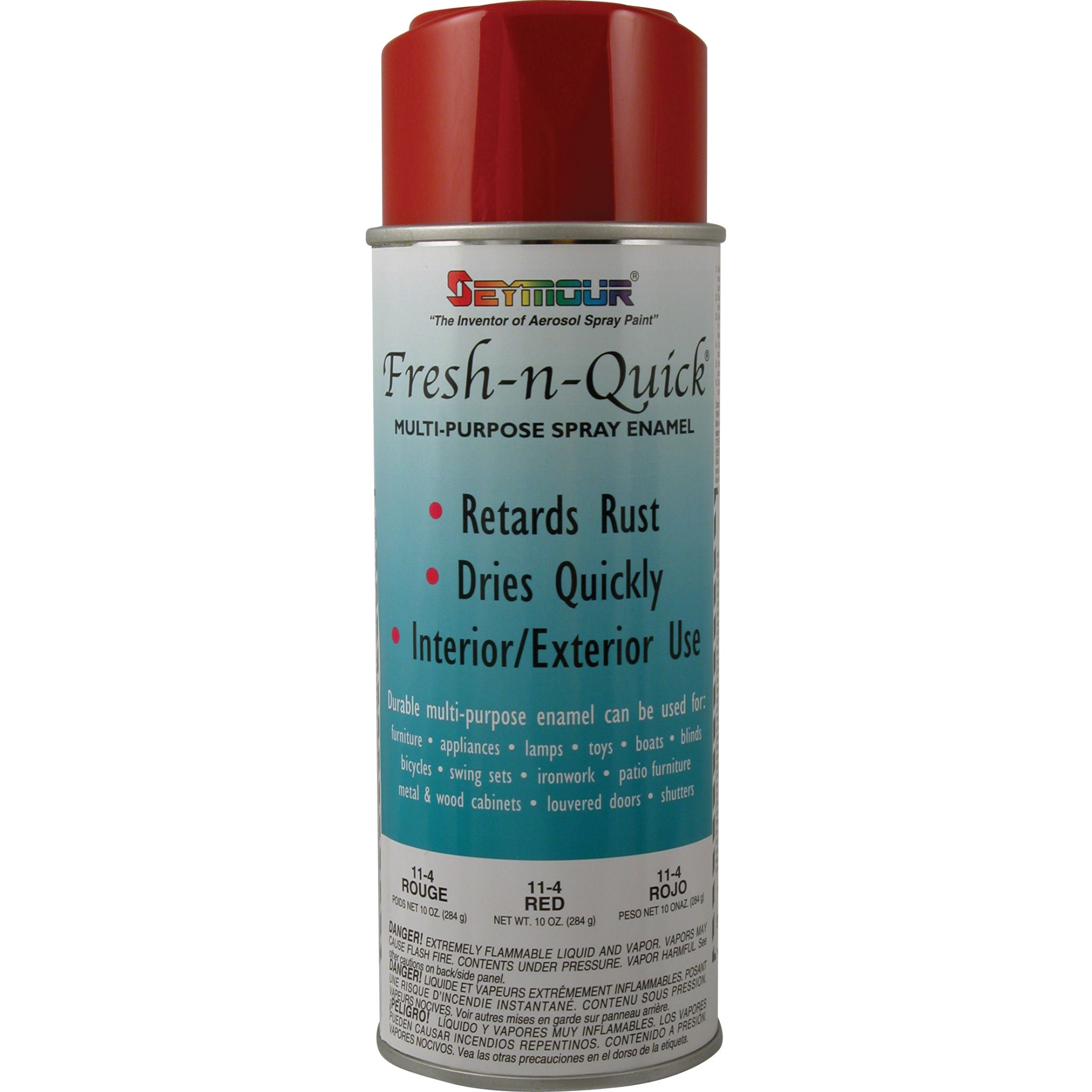 A high quality spray paint available in a wide range of popular colors and economically priced. Black and white available in a gloss or flat finish. It covers well, dries fast, and holes up well outdoors. Bare or rusted surfaces should be cleaned and primed with Fresh-N-Quick Gray Primer (11-15).