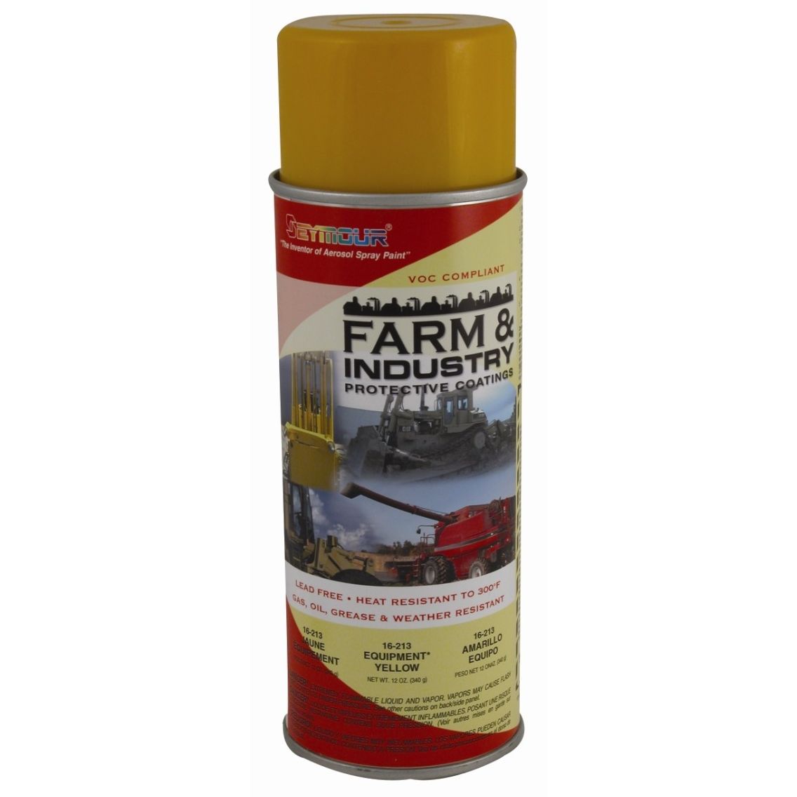 Farm and Industry paint not only environmentally safer, economical to use. More coverage and better hide per can requires fewer cans to get the job done. Seymour Farm and Industry spray enamel is heat resistant to 300 degree F, and dries quickly to a hard, long-lasting finish. Offered in a wide variety of factory-matched colors that won't fade, chip, crack or peel and is resistant to many chemicals including gasoline, oil and grease. Excellent for touch-up on farm tractors, implements, industrial and construction equipment.