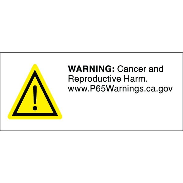 Prop 65 – Short Label: WARNING: Cancer and Reproductive Harm – www.p65warnings.ca.gov
