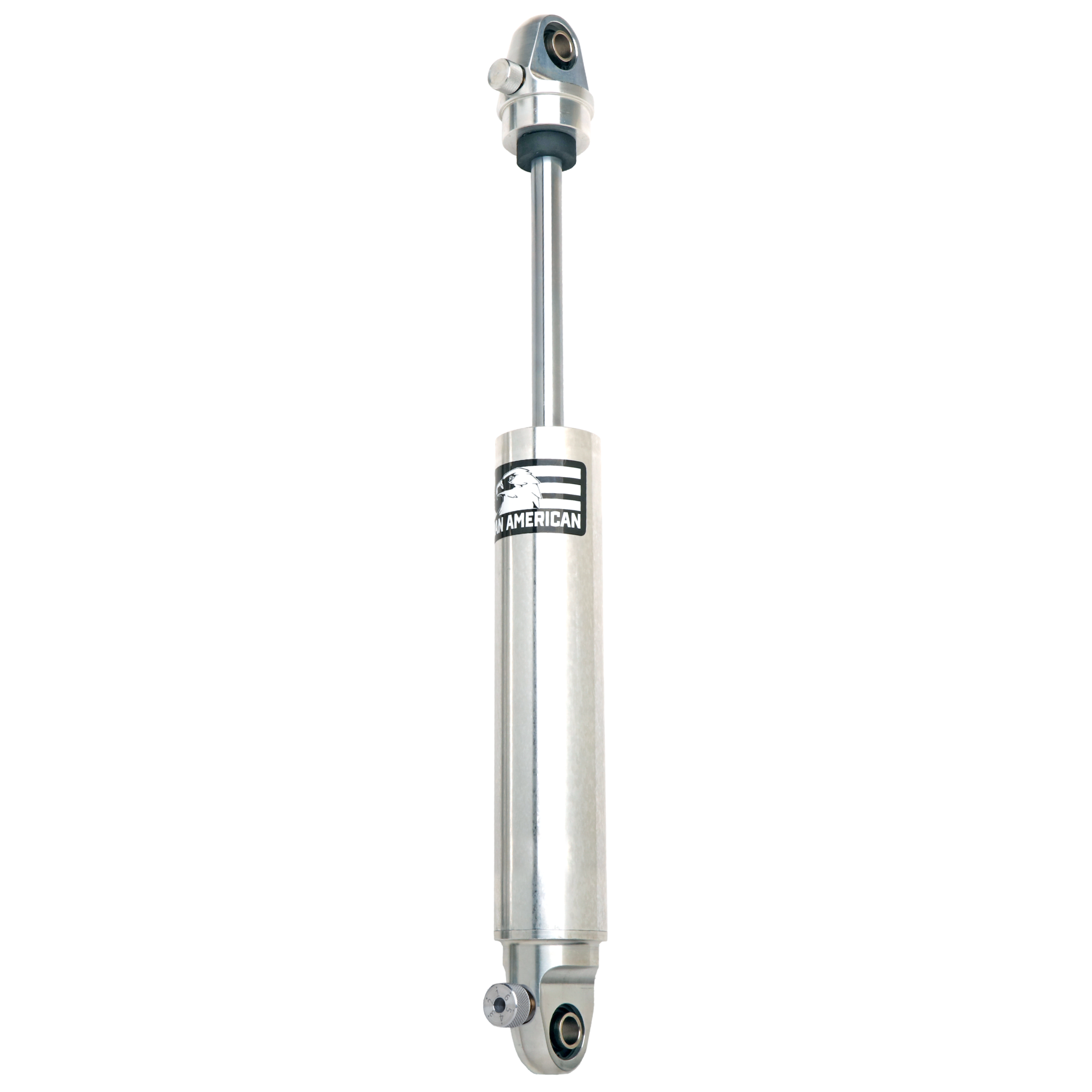 Shock Absorber, TrackLine, Double Adj. 23.75 in. Extended, 15.25 in. Compressed, Each. Bearing. Rebound and Compression Adjustable and Compression Adjustable. 1.000 in. wide x 0.500 in. bore spherical bearings included. Made in USA
