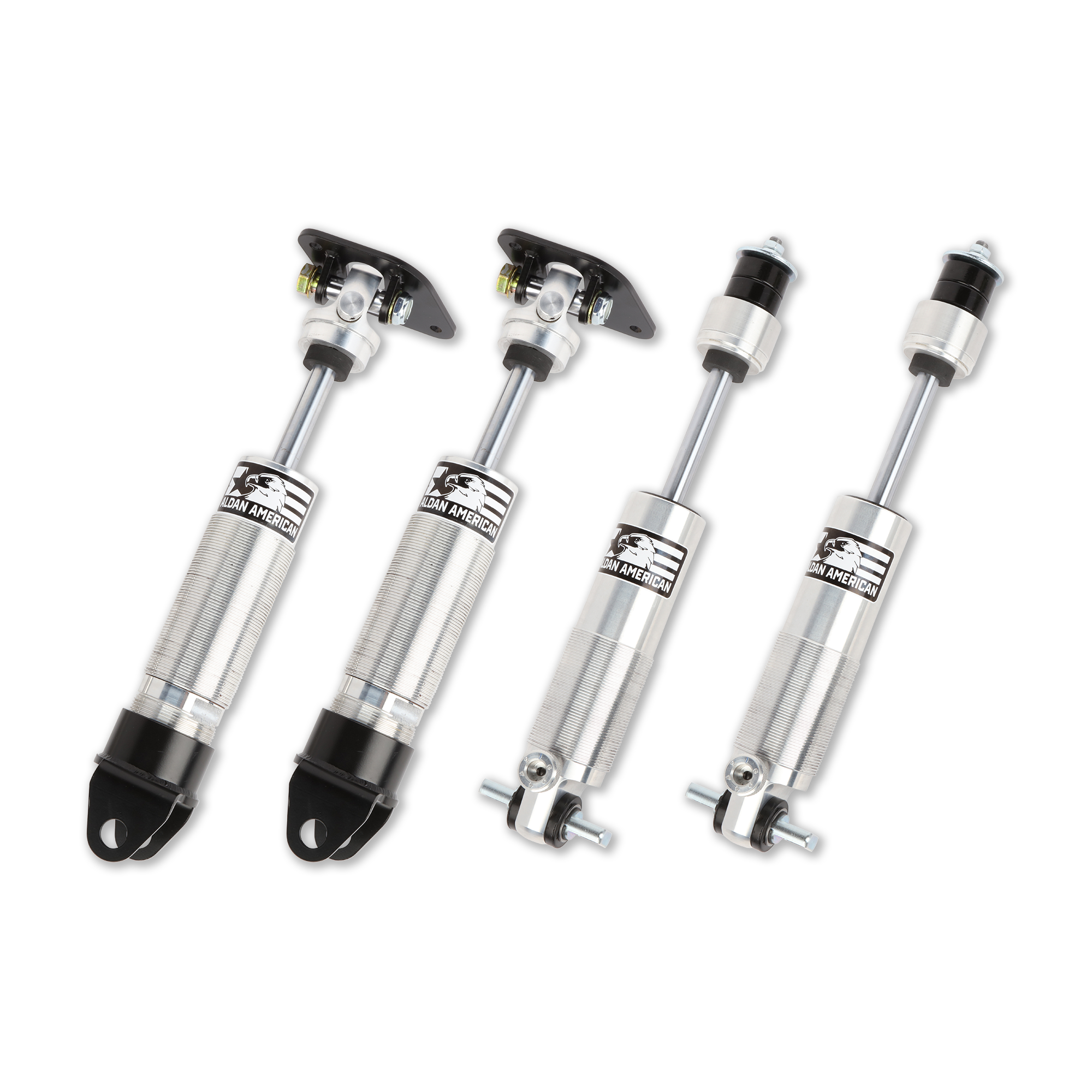 Shock Absorbers,TruLine, single adjustable, C5 and C6 Vette, Includes front and rear shocks, Set of 4. Rebuildable. Replaces factory shocks. Threaded shock bodies allow for coilover upgrade using Aldan part number ALD-32. Made in USA.