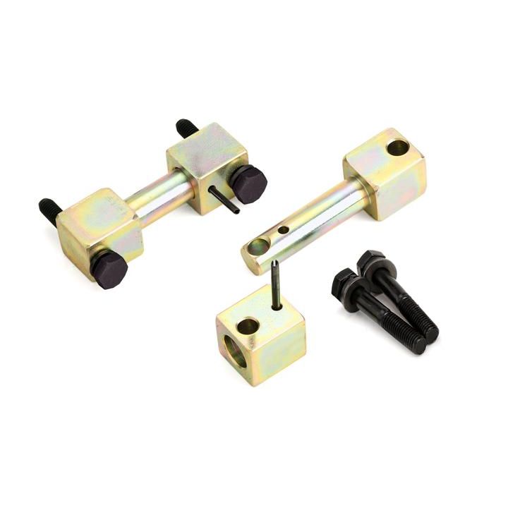 Upgrade the rear upper shock mounts of your Jeep Wrangler JK while gaining almost a ½” of shock absorber down travel with this JKS bar pin eliminator kit. This solution provides heavy duty cross pin and mount blocks allowing the conversion to standard EB1 eyelet style shock. There are numerous benefits. The design eliminates the transfer of noise and vibration caused by bushing movement and cradles the shock absorber bushing to proper for better performance and longevity. Machined bushing surfaces reduce friction and wear. Retains the original mounting alignment to prevent stress on shock absorber and bushing. Manufactured from premium grade steel and Zinc-coated for corrosion resistance. Compatible with OE and aftermarket shock absorbers.