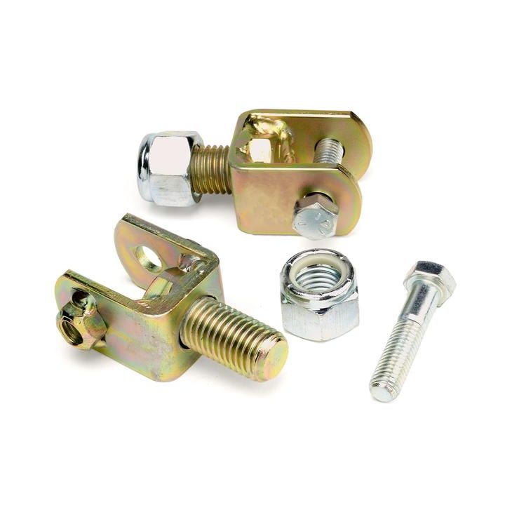 Convert the weak stem type shock mounts on your Jeep Wrangler TJ, LJ or JK to accept standard EB1 eyelet-style shock absorbers with JKS conversion brackets. Massive 7/8 in. mounting studs provide ultimate strength and security. Lowers the upper shock mount 1.10 in. for easy bolt access and additional droop. Conversion accepts popular extreme-travel aftermarket shock absorbers. Zinc plated for corrosion resistance.