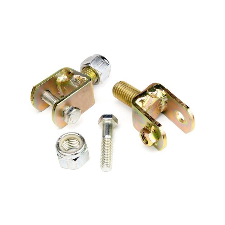 Convert the stem type shock mounts on your Jeep Wrangler YJ to accept standard EB1 eyelet style shock absorbers with JKS stem conversion brackets. Heavy duty bracket converts factory stem-type shock mount to accept eye ring shocks for improved selection. Massive 7/8 in. mounting studs provide ultimate strength and security. Lowers the upper shock mount 1.10 in. for easy bolt access and additional droop. Conversion accepts popular extreme-travel aftermarket shock absorbers. Zinc plated for corrosion resistance.