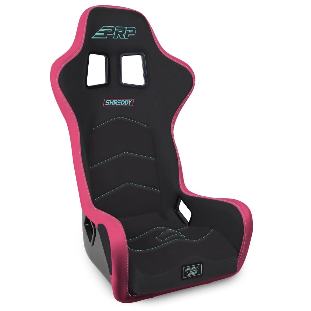 This PRP Seats / Shreddy collaboration Alpha Composite Seat is the raddest racing seat on the market. The Alpha Composite Seat is made with thick high-density foam all around for added comfort, and large harness slots that allow a fresh air hose to fit through. The injection molded, contoured bottom cushion provides great comfort during long endurance races. The recessed headrest and shoulder area creates more helmet room, and allows you to use a HANS device without the seat pushing your chest forward. Keeping your spine in-line at the correct angle while seated. The large harness slots on the shoulders allow you to fit the harness, and a fresh air hose through at the same time. Extra Wide – Fits Drivers with waist size up to 42" comfortably. Complete your whole interior with our full line of PRP x Shreddy Harnesses, Steering Wheels, and Stoage Bags. Requires PRP composite seat mounts to install. Features: Injection molded, contoured bottom cushion Thicker, higher density foam all around Reclined headrest for more helmet room Recessed shoulder area for HANS compatibility Larger shoulder harness slots allow room for fresh air hose Angled lap belt slots provides the proper angle to install lap belts Higher lateral containment keeps your legs held in