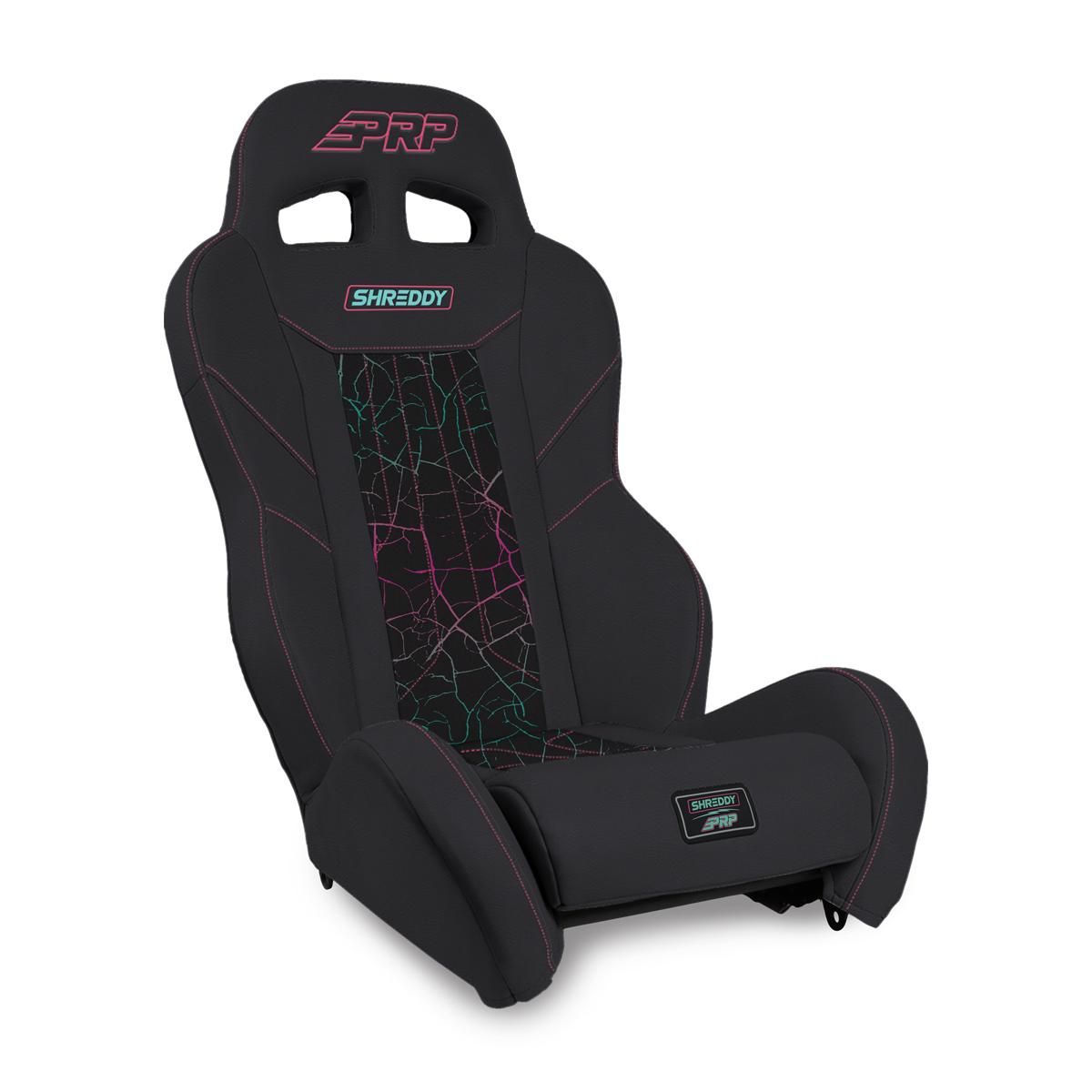 This PRP Seats / Shreddy collaboration XCR Suspension Seat is the raddest off-road seat for your UTV. New featureson the XCR include a removable seat cushion, a 5th point harness slot, and all new modern styling. Additional bands allow you to customize the colors and materials of your seat more than ever! The XCR features side bolsters towards the front that gives you some containment for when the ride gets rough. But the seat has open bolsters at the hips, which allow you to use OEM 3-point seat belts, and make it easy to use with retractable harnesses. These low sides make it much easier to get in and out of the vehicle and to get lap belts tightened. The vinyl-coated nylon suspension liner and dual-density foam decrease the impact on the body, reducing the fatigue you feel after a long day in the dirt or dunes. The removeable seat cushion give you lots of comfort on long rides, allows mud, sand, and water to drain out the bottom of the seat, and includes a 5th point slot for harnesses. Overall this seat is great for trail riding, or when you’re constantly getting in and out on rides. FITMENT: Fits into the Polaris General, General 4 (Front or Rear), XPEDITION, RZR S 900, RZR S4 900, 900 Trail, Trail, XP 1000, XP4 1000, XP Turbo, XP4 Turbo, XP Turbo S, XP4 Turbo S, RZR XP, or RS1. Polaris RZR PRO XP, Polaris RZR PRO XP4, Polaris RZR PRO R, Polaris RZR PRO R4, Polaris RZR PRO S, Polaris RZR PRO S4, Polaris RZR Turbo R, Polaris RZR Turbo R4, Polaris PRO S, Polaris PRO S4, Can-Am Maverick X3, Can-Am Maverick X3 MAX (Front or Rear), Can-Am Maverick R, Can-Am Maverick R MAX (Front or Rear); Kawasaki Teryx KRX4 (Rear only), Segway Villian – with the purchase of adapter mounts (sold separately).
