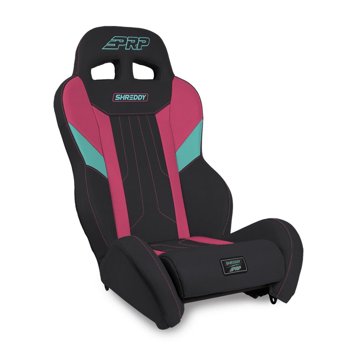 This PRP Seats / Shreddy collaboration XCR Suspension Seat is the raddest off-road seat for your UTV. New featureson the XCR include a removable seat cushion, a 5th point harness slot, and all new modern styling. Additional bands allow you to customize the colors and materials of your seat more than ever! The XCR features side bolsters towards the front that gives you some containment for when the ride gets rough. But the seat has open bolsters at the hips, which allow you to use OEM 3-point seat belts, and make it easy to use with retractable harnesses. These low sides make it much easier to get in and out of the vehicle and to get lap belts tightened. The vinyl-coated nylon suspension liner and dual-density foam decrease the impact on the body, reducing the fatigue you feel after a long day in the dirt or dunes. The removeable seat cushion give you lots of comfort on long rides, allows mud, sand, and water to drain out the bottom of the seat, and includes a 5th point slot for harnesses. Overall this seat is great for trail riding, or when you’re constantly getting in and out on rides. FITMENT: Fits into the Polaris General, General 4 (Front or Rear), XPEDITION, RZR S 900, RZR S4 900, 900 Trail, Trail, XP 1000, XP4 1000, XP Turbo, XP4 Turbo, XP Turbo S, XP4 Turbo S, RZR XP, or RS1. Polaris RZR PRO XP, Polaris RZR PRO XP4, Polaris RZR PRO R, Polaris RZR PRO R4, Polaris RZR PRO S, Polaris RZR PRO S4, Polaris RZR Turbo R, Polaris RZR Turbo R4, Polaris PRO S, Polaris PRO S4, Can-Am Maverick X3, Can-Am Maverick X3 MAX (Front or Rear), Can-Am Maverick R, Can-Am Maverick R MAX (Front or Rear); Kawasaki Teryx KRX4 (Rear only), Segway Villian – with the purchase of adapter mounts (sold separately).