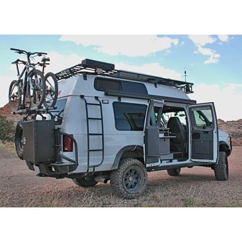Whether you have an Aluminess roof rack, or just a plastic storage box, the van roofs are a great place to store bulky things. The problem is how you get up there to strap everything down. Aluminess solves this problem with their all-aluminum Side Ladder for the Ford E-Series. These mount to the side of the vehicle solving the problem of drilling through your rear van door. Passenger side ladders are recommended to avoid traffic unless you have an awning that gets in the way.