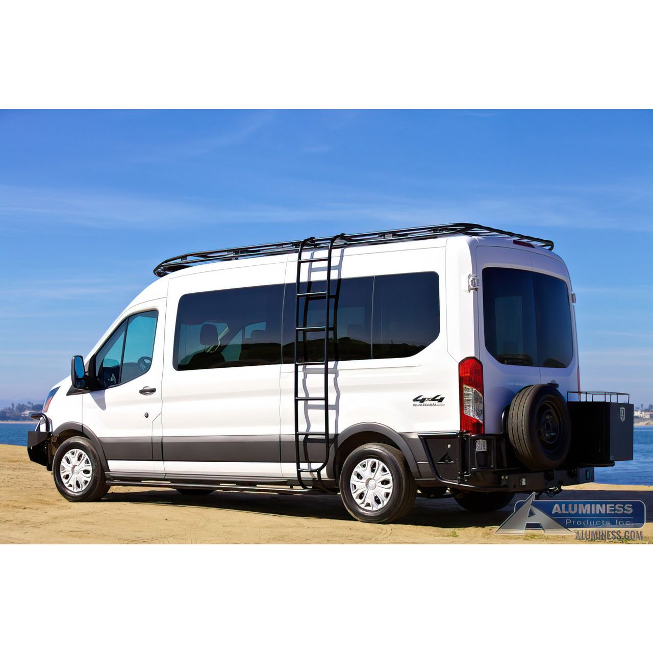 If you have a roof rack, then access to the roof is a must. Our aluminum Side Ladder for the Ford Transit provides quick and easy access to your roof rack without the need to drill through the rear door of your vehicle. Our driver side ladder sits about 5" away from the van, which gives you ample space to climb, but is tight enough to the body of your Transit to easily avoid any obstacles.