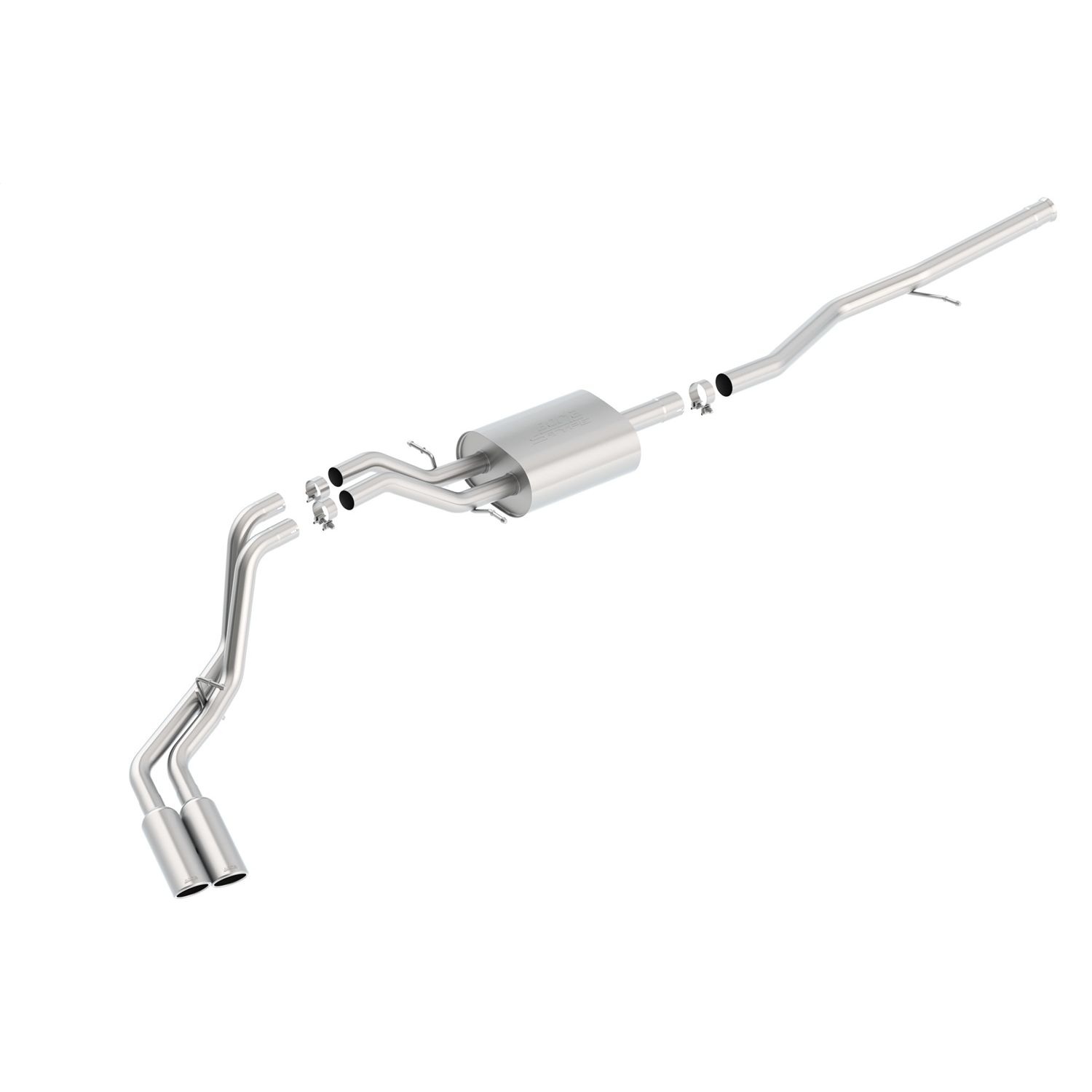 Features bright chrome on T-304 stainless steel tips. Borla(r) Cat-Back(tm) & Axle-Back exhaust systems feature patented straight-through and multi-core technology designed to unleash hidden horsepower. Increased exhaust velocity adds power, driving excitement, fuel economy, and the distinctive Borla(r) Sound of Power respected by motoring enthusiasts everywhere. Each system is built from premium T-304 stainless steel, superior to T-400 series knockoffs (such as 409), to give you the absolute best in performance and durability. Ultra-smooth mandrel bends ensure maximum flow & power, and precision computer-controlled CNC manufacturing ensures an accurate fit. Best of all, Borla(r) stands behind every system with a Million-Mile Warranty. Just what you'd expect from the world's most experienced (and most winning) exhaust brand.
