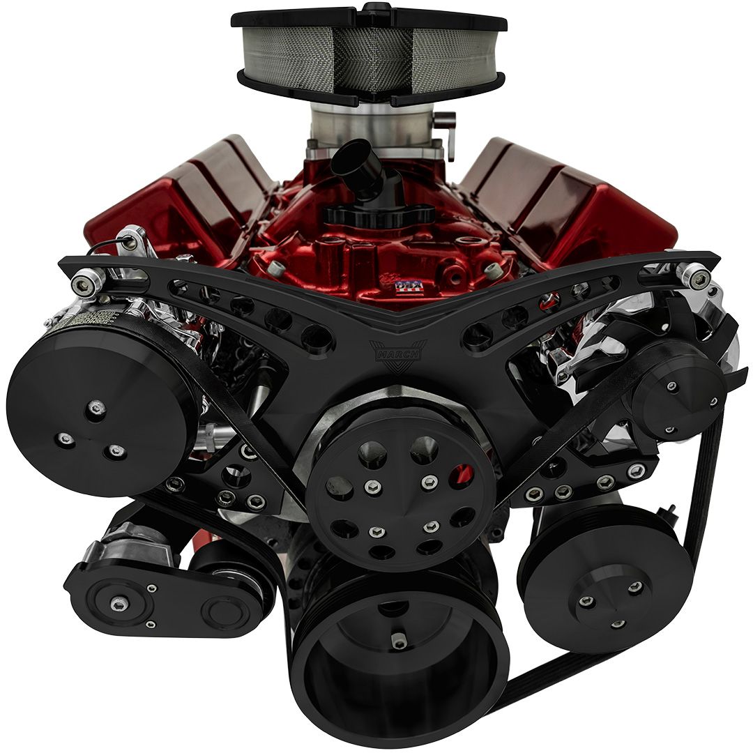 Small Block Chevy Revolver Serpentine System – AC & PS – GMT2 – Black